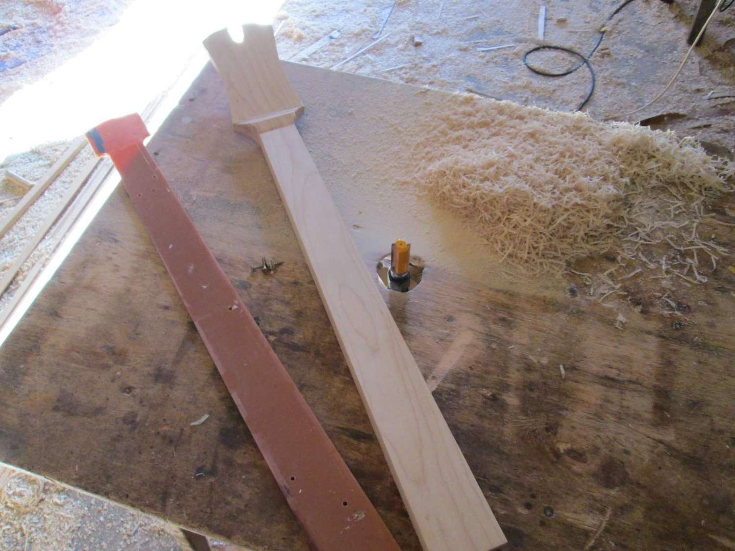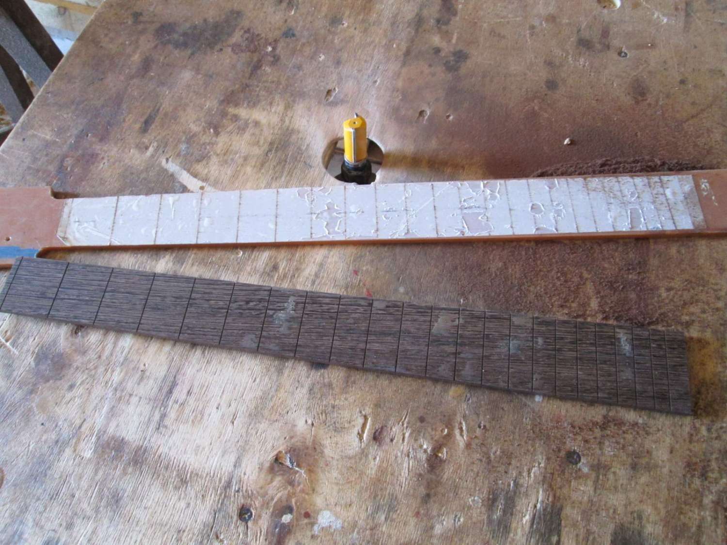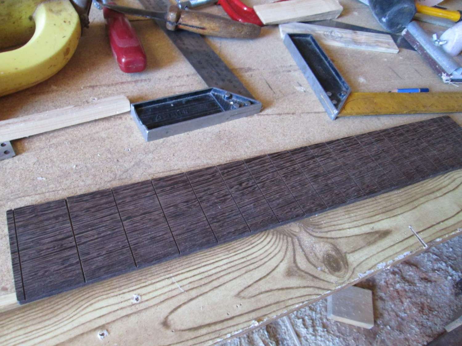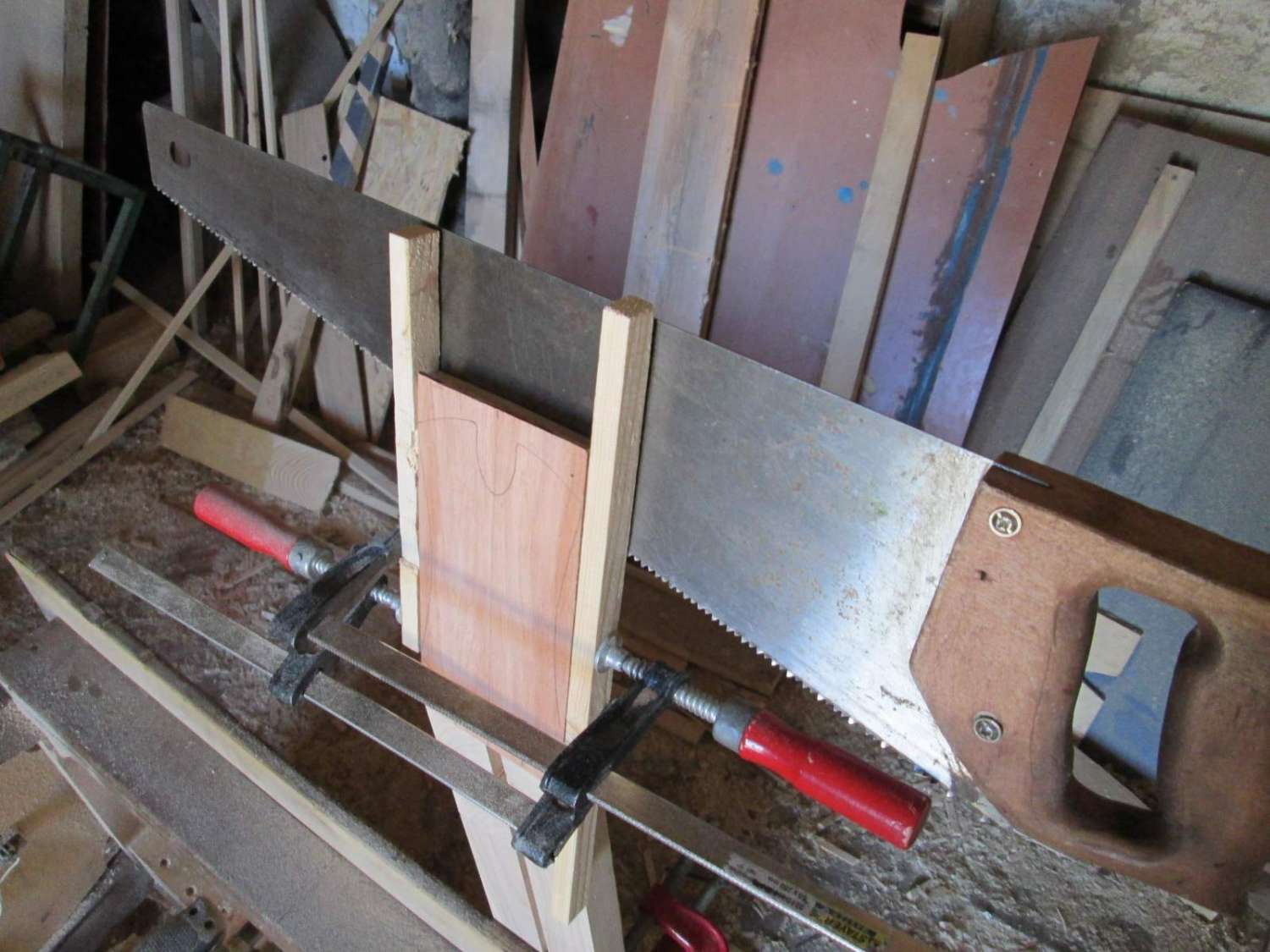 ... и добавил:Гриф кленовый, пилить ножовкой. Рейки в качестве направляющих, прибиты гвоздями