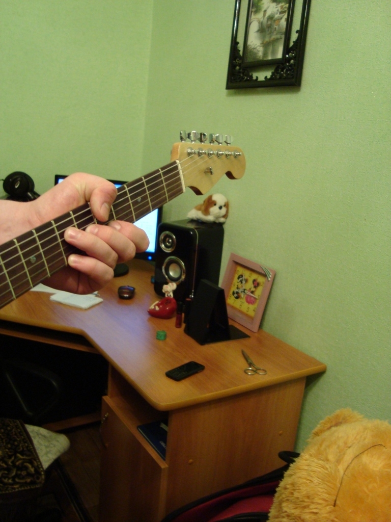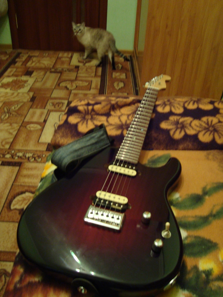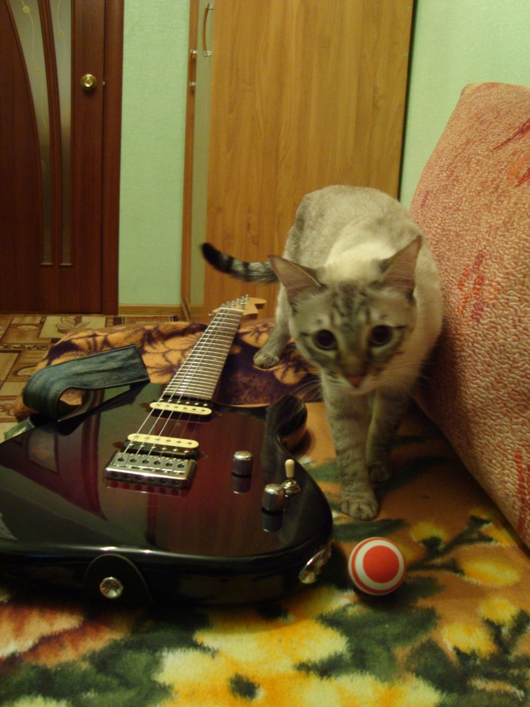 Кот подозрительный, весна, а у него не гитарное настроение. Наши дудят так, что глушат фрезер Семена.