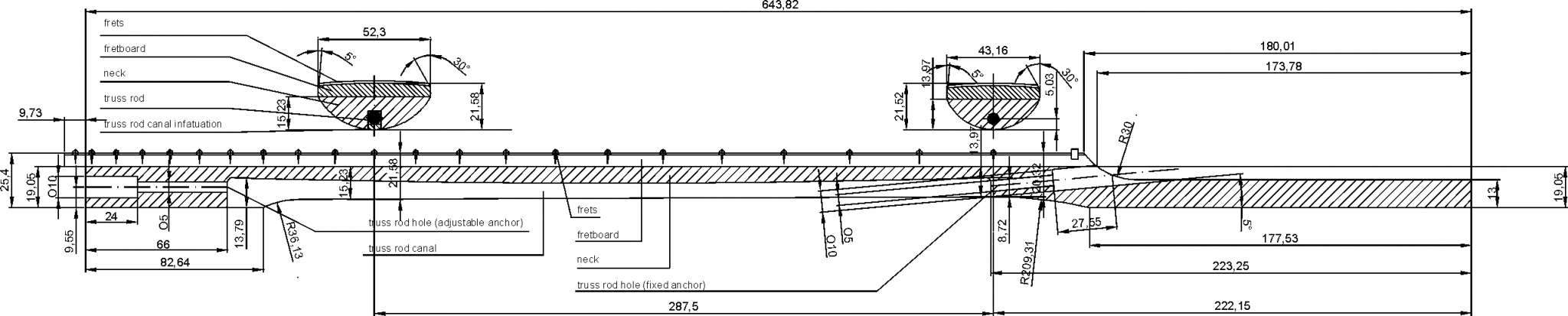 может кому пригодится, чертил давно, размеры лучше перепроверить (особенно ширину грифа)