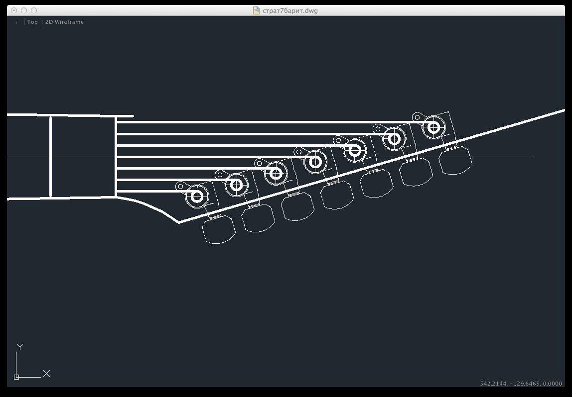 а кто-нибудь проектировал семиструнные односторонние головы? не могу поймать угол головы, при котором струны идут прямо и параллельно друг другу. все время веер получается....