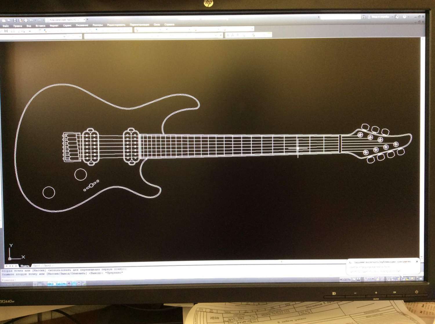 Нужен чертёж суперстрата 6 струн, 24 лада, с бриджем(тюноматик) и струны сквозь корпус.