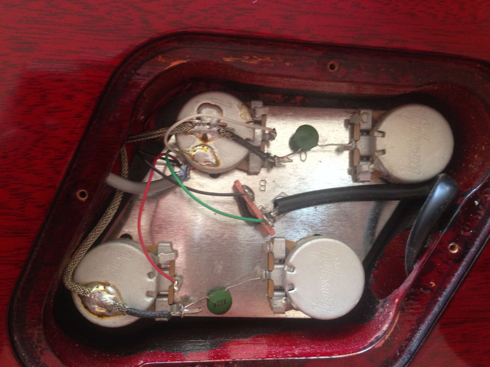 В общем, все получилось. Вскрыл, протер, смазал, и теперь ничего не шуршит. Только вот как не старался, но все же оторвал резистор, или как его там, расположенный между вольюмом и тоном. Ну ничего, завтра разживусь паяльником, исправлю)