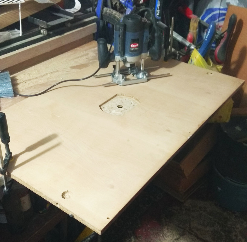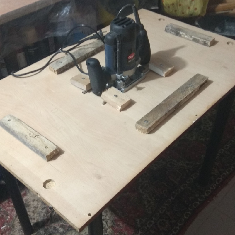 5) Так же сделал кое-что из приспособ: так называемый фрейзмус (фото несколькими постами выше), для работы фрезером по плоскости. Пару дней назад изготовил циркулярный стол, чтобы распиливать и распускать заготовки. В настоящий момент в процессе изготовления дополнительная столешница к этому столу для установки фрезера и лобзика.
