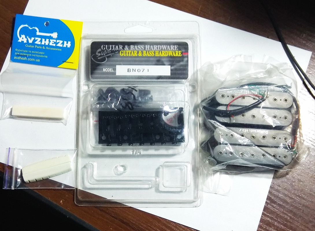 4) Кое-какая фурнитура и механика: бридж, порожек, датчики, анкер (двусторонний, который когда-то изготовил самостоятельно). К слову, датчики подарил очень добрый человек с форума, дай Бог ему здоровья и долгих лет