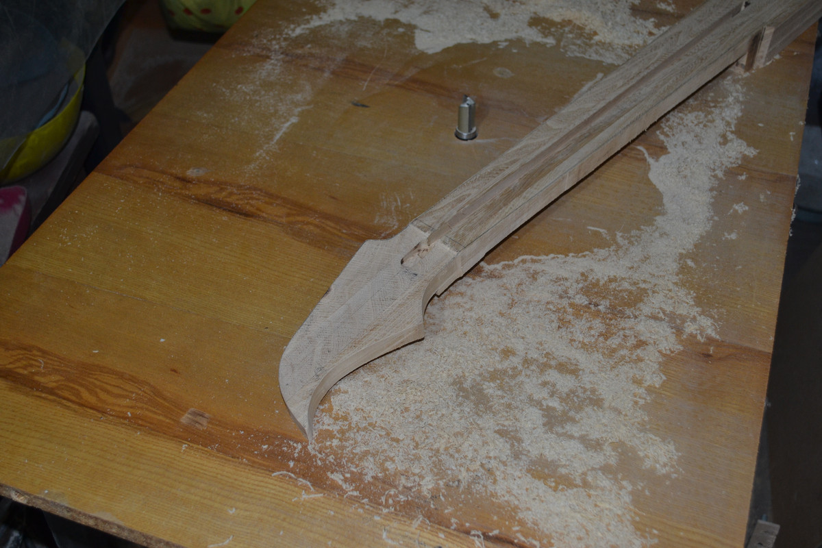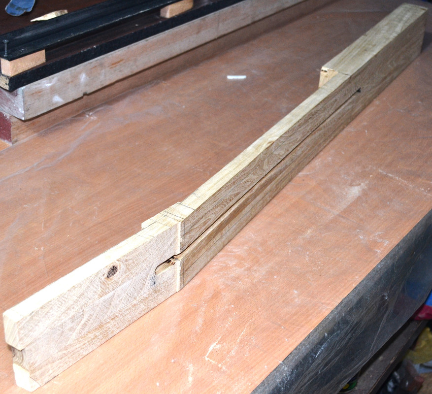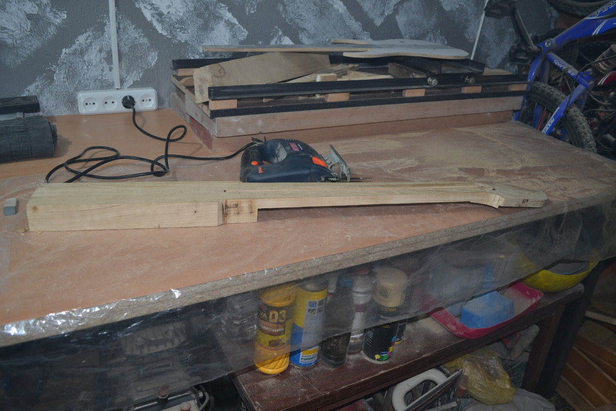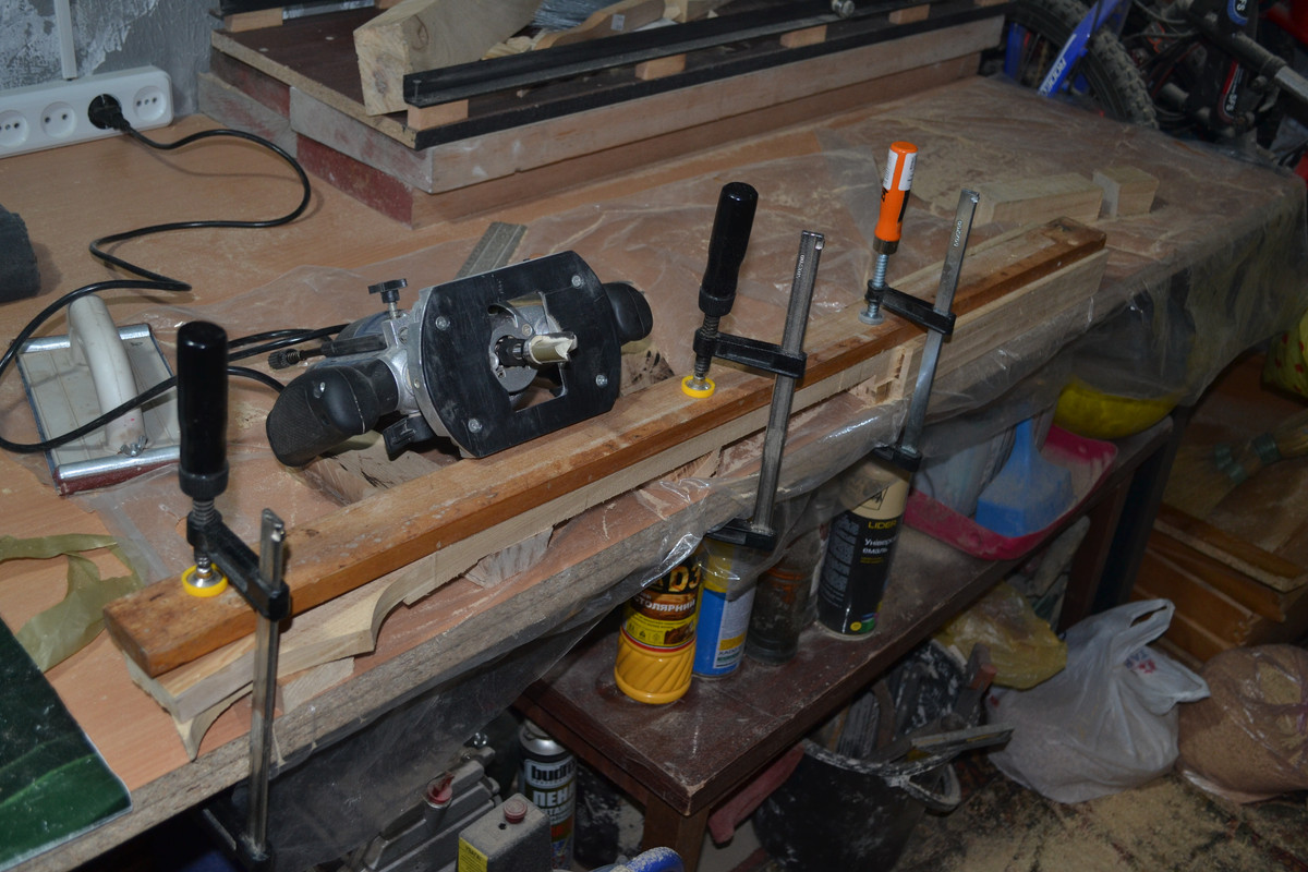 Решил не придавать геометрию грифа, а сразу же клеить, т.к. после распила и переворота средней части бруски чуть повело, и остальные 2 плоскости будущей заготовки, естественно, не совпали (та на которой будет накладка и противоположная). Затея ровнять бруски, выпиливать и пытаться ровно склеить - показалась адски трудоёмкой, к тому же, есть огромное количество моментов, где легко можно накосячить. Да ещё и после таких манипуляций, в случае чего, выровнять плоскость, где будет накладка, станет для меня невозможным. Зато теперь после высыхания переклея, кину полученную заготовку целяком на фрейзмус и прогоню плоскости. Геометрию потом сделаю или тем же фрейзмусом, или сначала выпилю с припусками, на черновую, и доведу фрейзмусом.