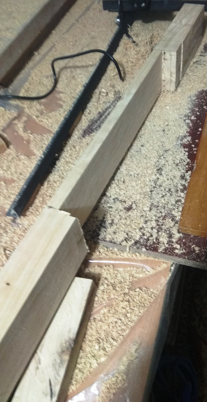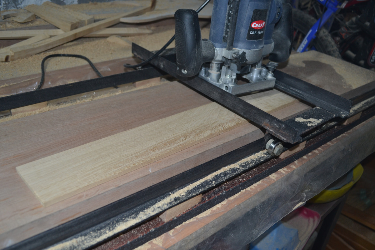 Короче говоря, с утра поразмыслив дома немного, вышел в мастерскую, и решил попробовать выровнять бруски на фрейзмусе. Прошёлся металлической линейкой по плоскостям кромок и заметил, что каждая кромка, естественно, лежит не в одной плоскости, а "гуляет", плюс к этому, противоположные плоскости к тому же ещё и не параллельны. Кинул на фрейзмус так, как есть, прошёлся штангелем по верхней плоскости, нашел самое заваленное место, и по его размерам обкатал всю кромку, тем самым, получив базовую поверхность. Перевернул - о, результат есть, брусок уже не "гуляет", значит на отфрезерованной поверхности пропеллер ушёл. Зафиксировал, и по такому же алгоритму проанализировал и обкатал противоположную поверхность. Так же поступил и с оставшимися 2-мя брусками, затем шлифанул наждачкой на бруске и вуа-ля - результат порадовал, почти идеал.