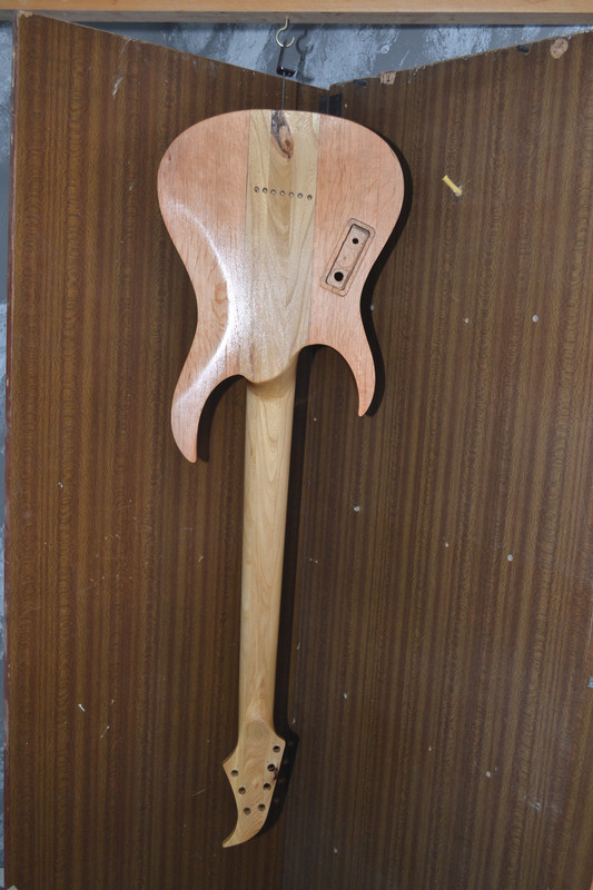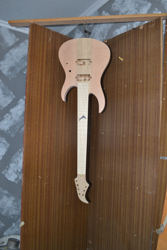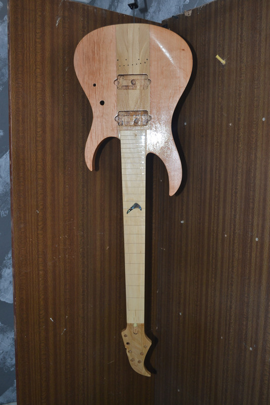 Решается. Пытаюсь замаскировать по максимуму. Да ещё мелкие косячки устраняю. Сегодня пропилы под лады допиливал, потому что после придания мультирадиуса, естественно, глубина уменьшилась, и в одном месте по запаре пильнул накладку. Плюс ещё один косяк в копилку. Тоже пришлось шпакленуть ПВА+древесная пыль. И таких мелких косячков немало. Блин, аж уже психика едет с катушек