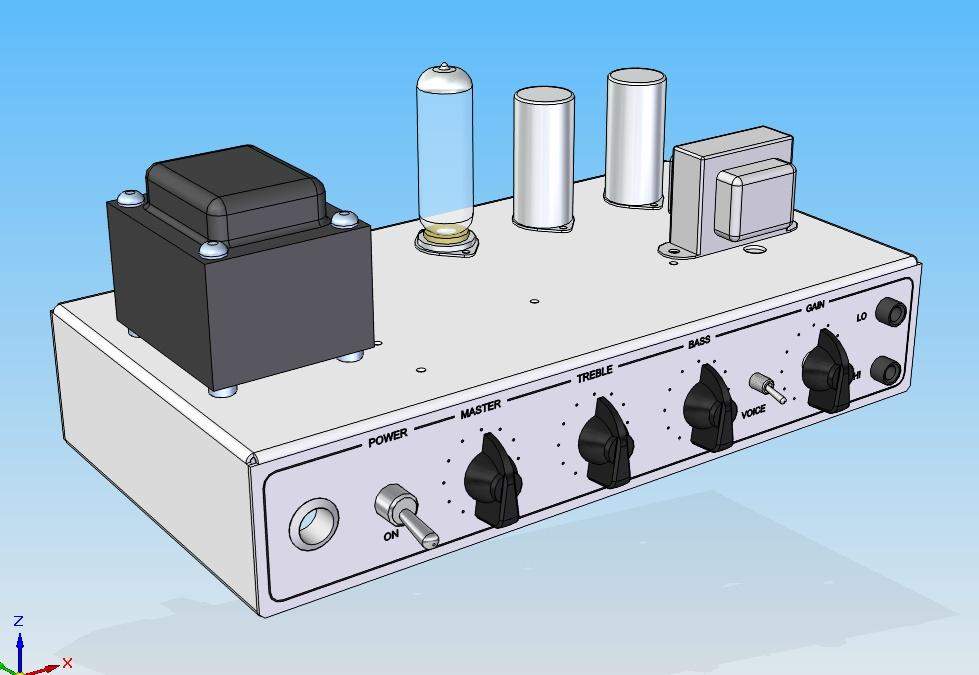 Пот гейна будет сдвоенный 100 кОм, проверял на макете, работает адекватно, звучит. Похоже на правду. Пробовал с 1 Мег, и 500 кОм, не то. С 100 кОм понравилось больше. Да и собственно причин не доверять AZG у меня нет