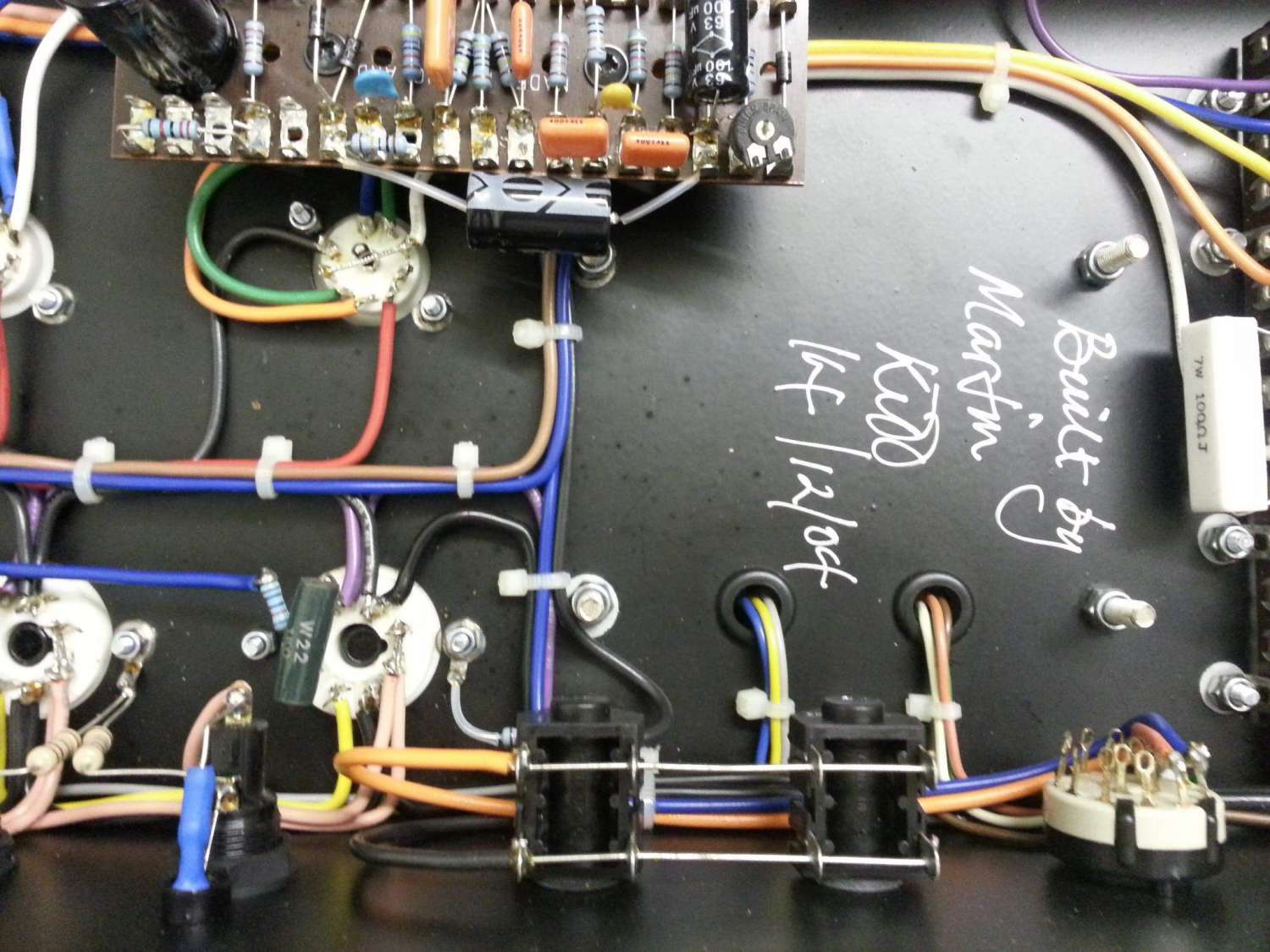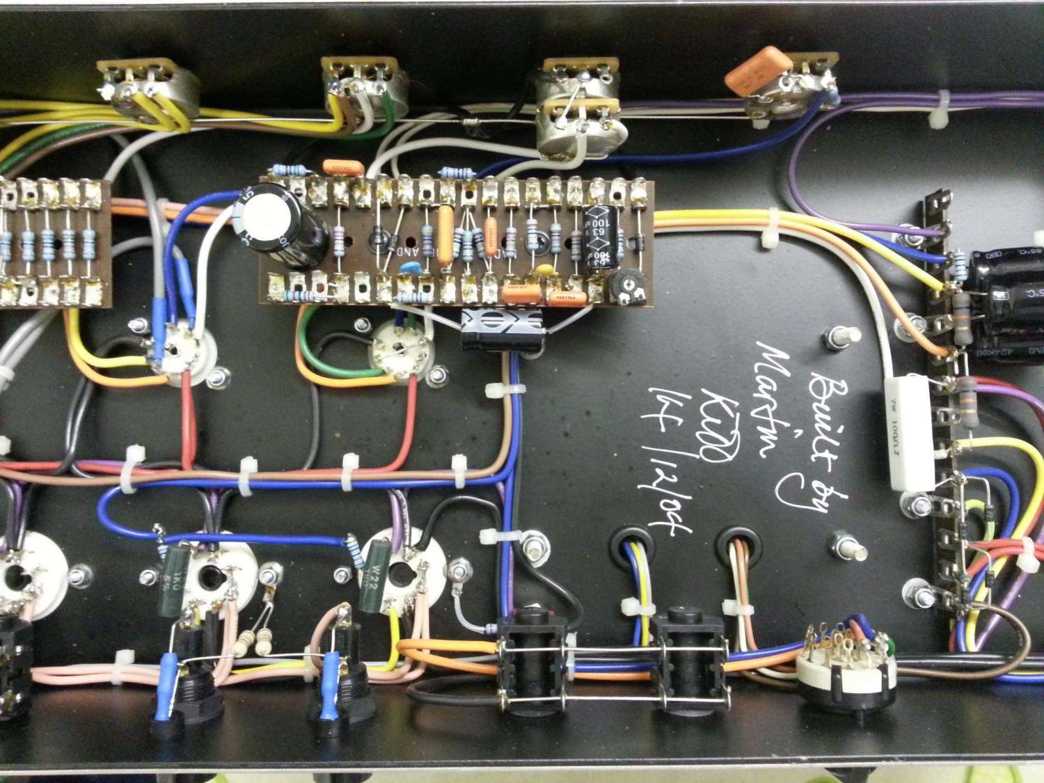 В остальном вроде близко к схеме. Накал через 2х100 Ом приподнят от земли посредством катодного резистора выходной лампы (470 Ом). Фона нет.
