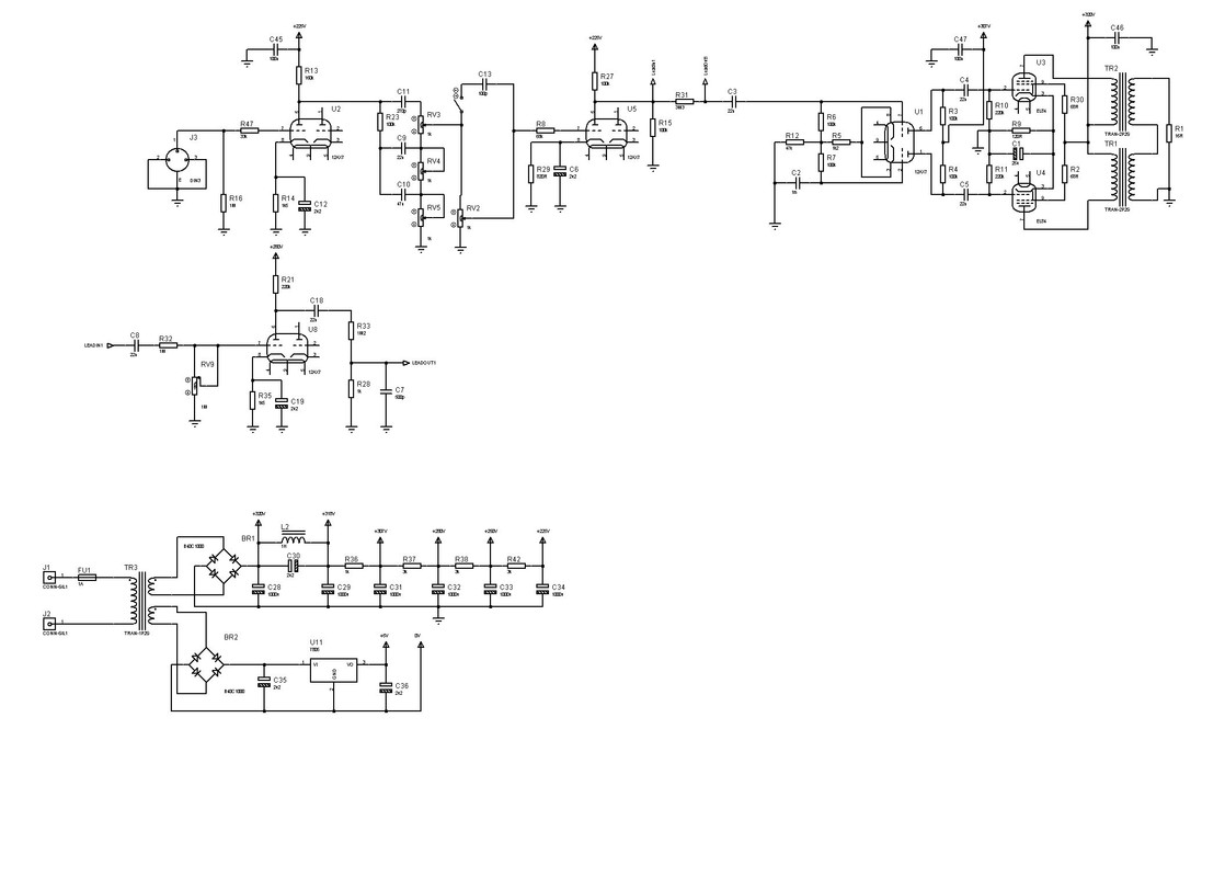 - в анодном все электролиты подписаны 100 мкФ. Это очень большие емкости для такого применения. Требуется буквально один после моста, далее 47-22-22-22 мкф более чем достаточно. Динамика будет "гитарной".