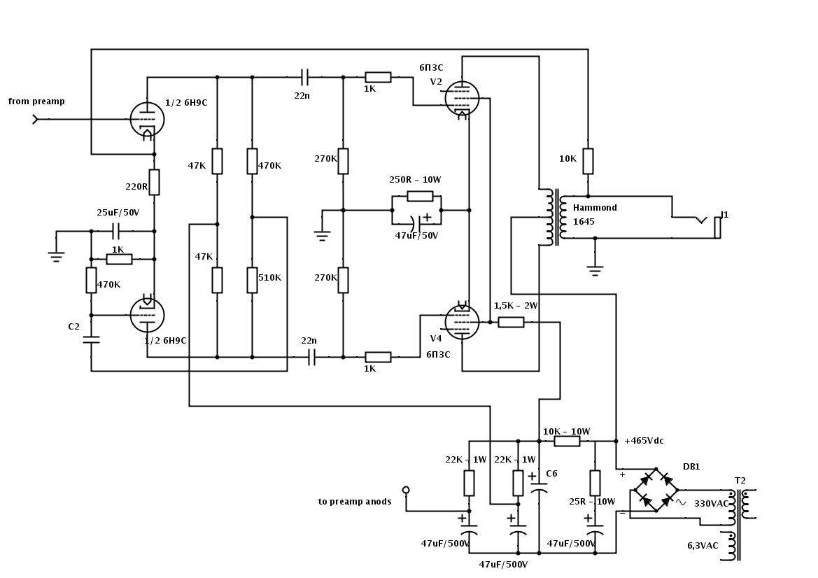 Поскольку трансформатор питания одинаковый для обоих каналов, выбирался под напряжения необходимые B25 - одна из вторичек транса выдает 330в под нагрузкой, что после диодного моста дает примерно 465В анодного. Нужен ли такой транс, или можно использовать что-то более классическое с напряжением в районе 250-260 переменки? Если да - то что нужно переделать в схеме преампа?