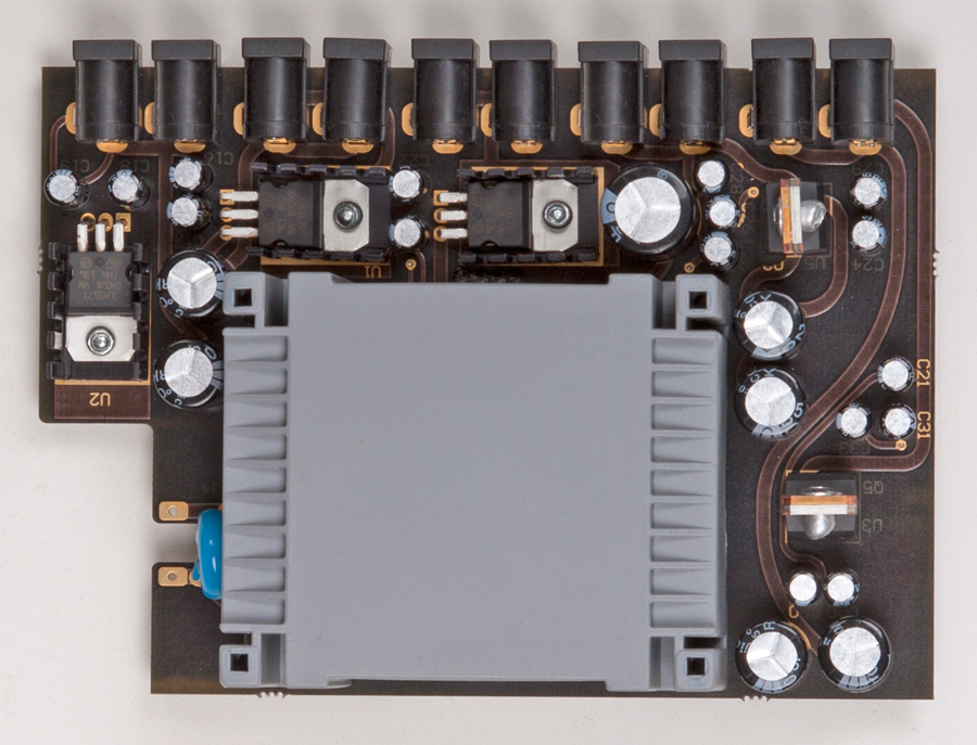 Возвращаясь к деньгам - так как у меня педалек больше десятка уже давно, а времени нет и 3 транса, которые купил для пробы, больше достать не могу (местный магазин закрылся и онлайн таких нет или намного дороже), то пришлось за 70 баксов просто купить готовый Donner DP-3, в котором стоит тороид с отдельными обмотками и стабилизаторами - всё по уму:
