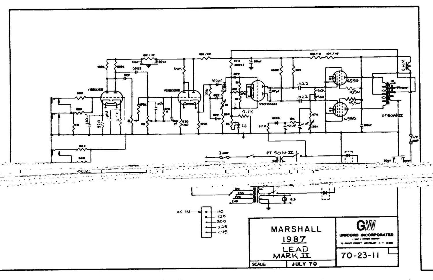 Попал ко мне усилитель, выпуска времен СССР. С виду он похож был на Marshall JMP MKII, короче владелец просил отремонтировать. Но ремонтировать там было нечего. Электролиты в мусор (советские на резьбе), потенциометры туда же, конденсаторы там были те, которые были доступны в то время. Короче зачем я и сам не знаю, пошел на эту авантюру по переделке усилка.