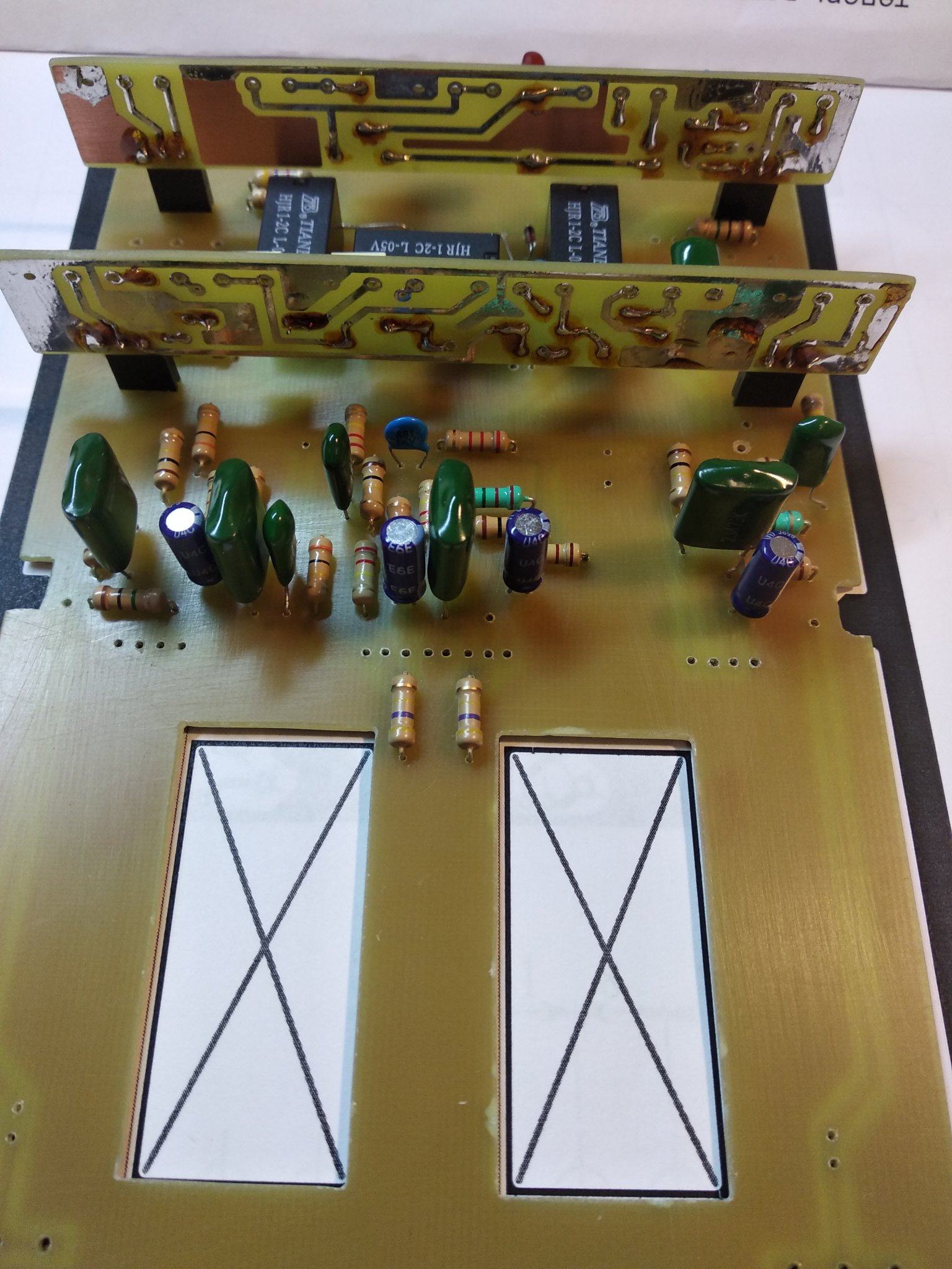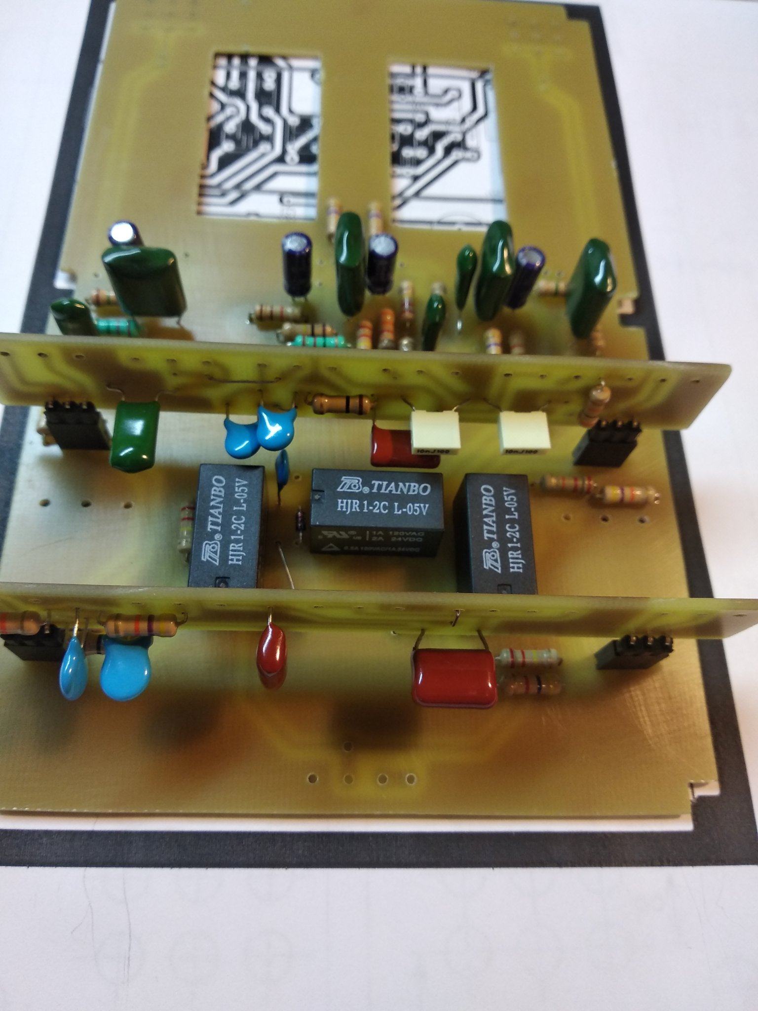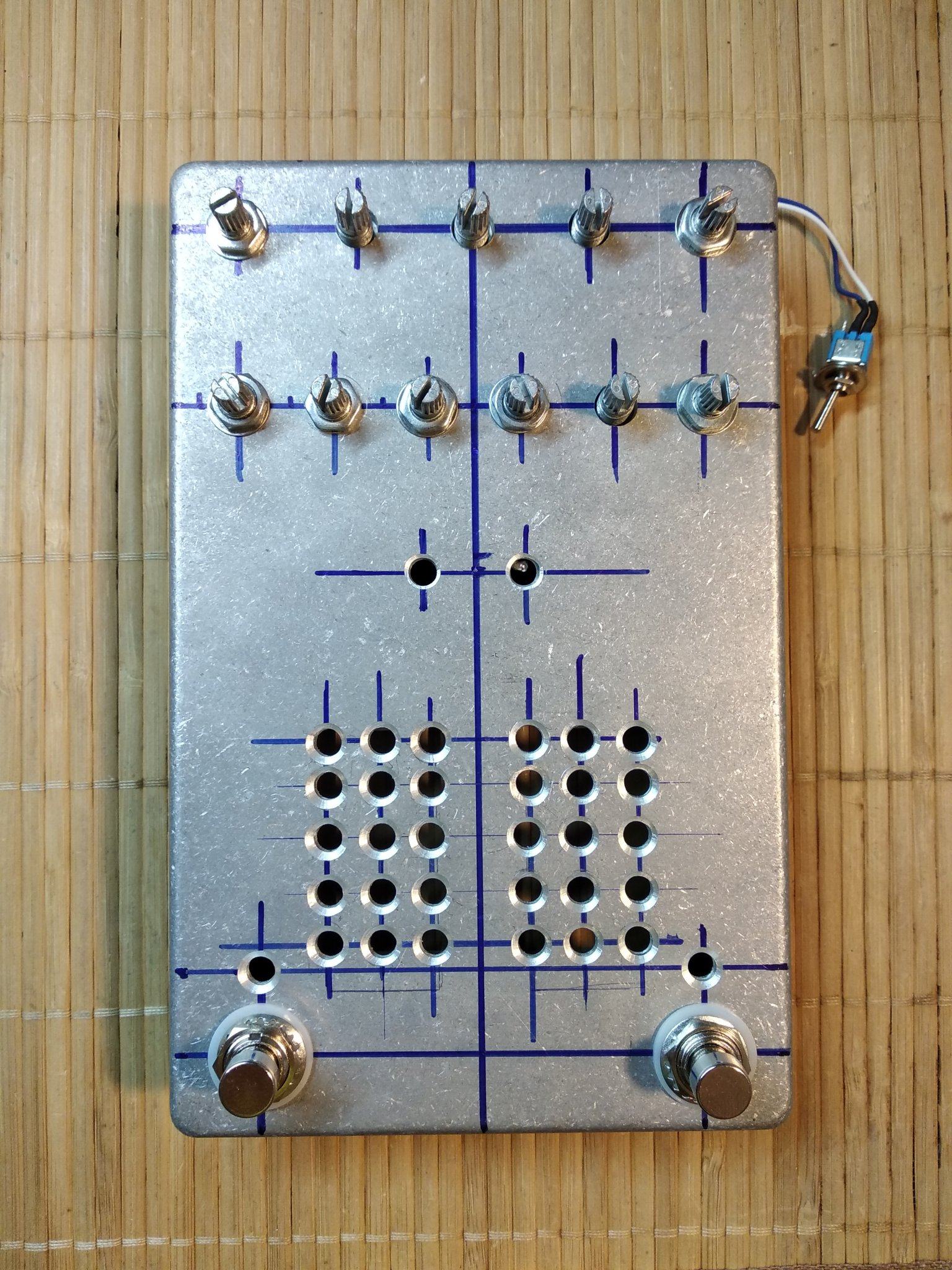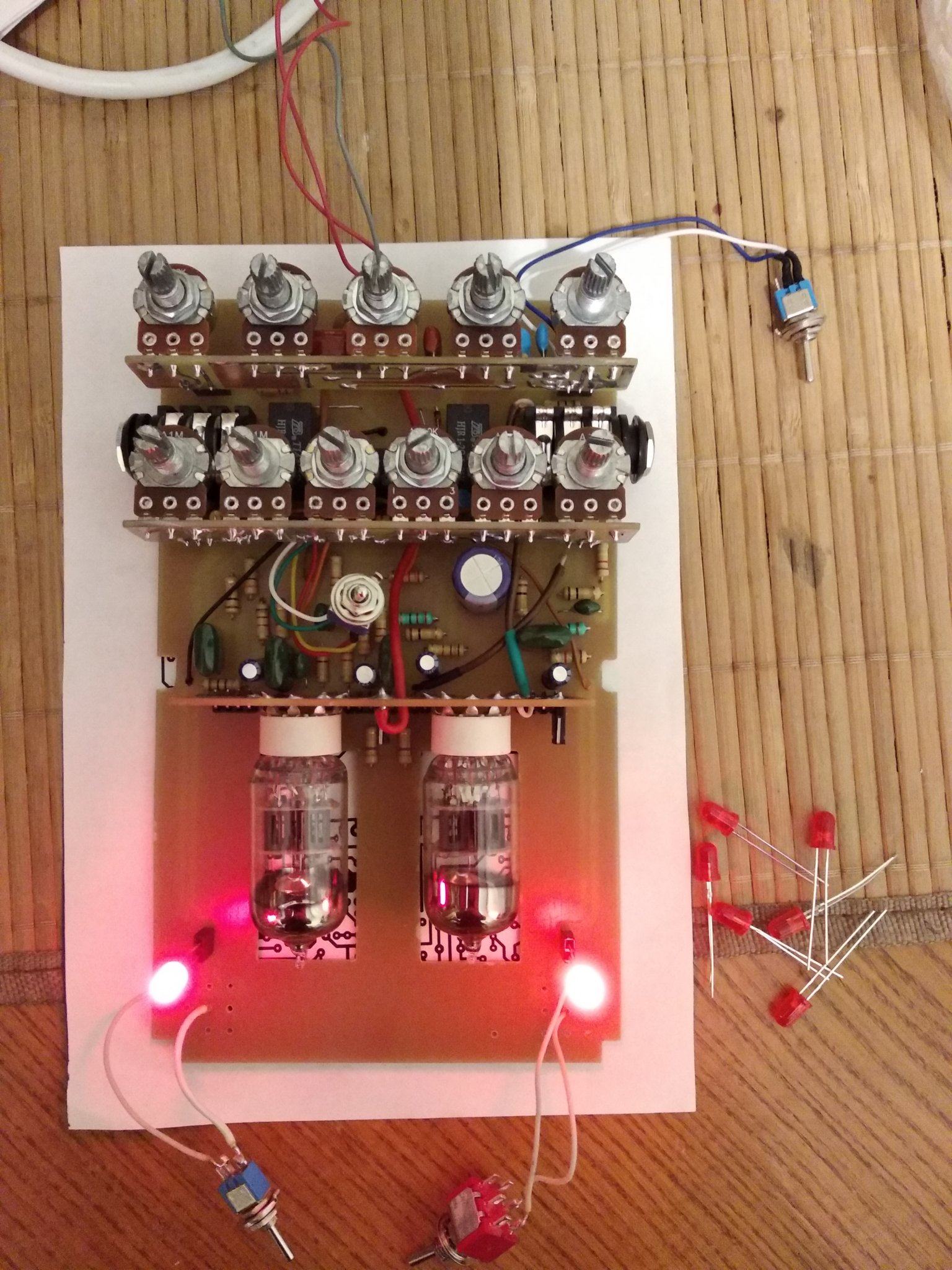 Все , допилил я наконец то свой напольник. Все работает, звучит. При сборке оказалось несколько моментов. Во первых сам корпус оказался немного больше платы, наверное автор делал печатку под гаинтовский корпус , а я нашел только китайское подобие Хаммонд 1590 DD . И через это гнезда под вход и выход не доставали до самих стенок , чтобы их можна было прикрутить к корпусу. Никаких претензий ни к кому нет , надо было сразу купить корпус .Выход из ситуации нашел. Придумал просто рассверлить отверстия побольше , чтобы закручивать гайки сразу насквозь , оказалось что так тоже держится отлично . В который раз убедился что надо сначала покупать корпус , а потом подгонять под него печатку . Ну вообщем и так тоже все отлично влезло. Других корпусов у нас нет в продаже. Кнопок 3PDT тоже не было , поэтому поставил SPDT, припаял к плате перемычками , тоже отлично все вышло. Ну и решил использовать гнездо для подачи питания на преамп , а не просто проводом . Гнездо с штекером покупал на Алишке, точно не помню как называется . С корпусом фон и возбуды полностью пропали . Единственное что не очень удобно - это нет переключения между хай гейном сразу на клин, читал что можна потом добавить один тумблер между кнопками каналов. Над внешним видом пока особо не парюсь , мне и так устраивает , может потом нарисую какую-то лицевуху.