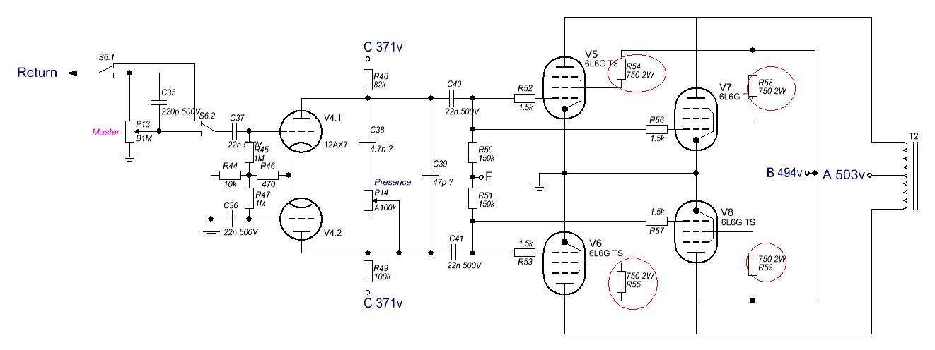 Кури номиналы в т/б. У меня на 2 х 6П3С низа столько, что свип и басс ниже/выше 12 часов крутить просто опасно, в комнате ходит ходуном все, что к полу не приколочено, особенно в Дроп Ре.