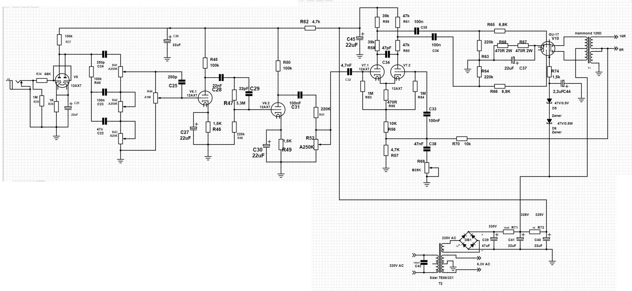 Всем привет! Хочу собрать себе такой усилитель, есть немного вопросов к знатокам. Нашел где прикупить приличные QQEO3/12 недорого, ГУ-17 уже есть. Надо ли для использования QQEO3/12 что-то в схеме менять? Силовик поставлю ТАН43, а выходной Хаммонд 125Е, его точно также как и 125D подключать? Заранее спасибо.
