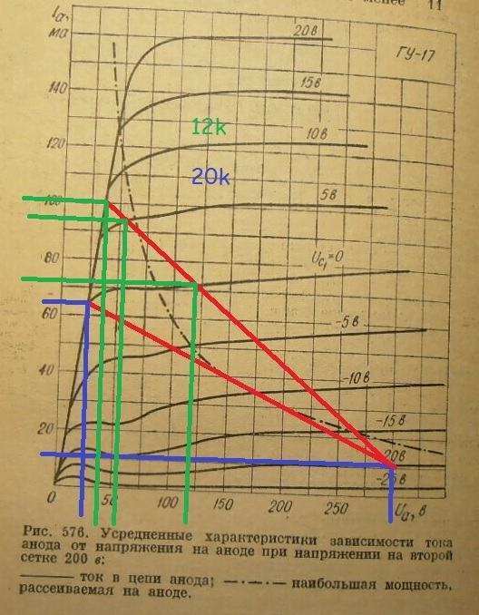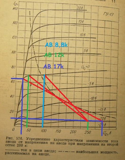 major73727, для большей мощности нагрузочную рисуют от рабочей точки в перегиб вах при напряжении первой сетки 0, в случае работы без сеточных токов, а это 100% гитарников
