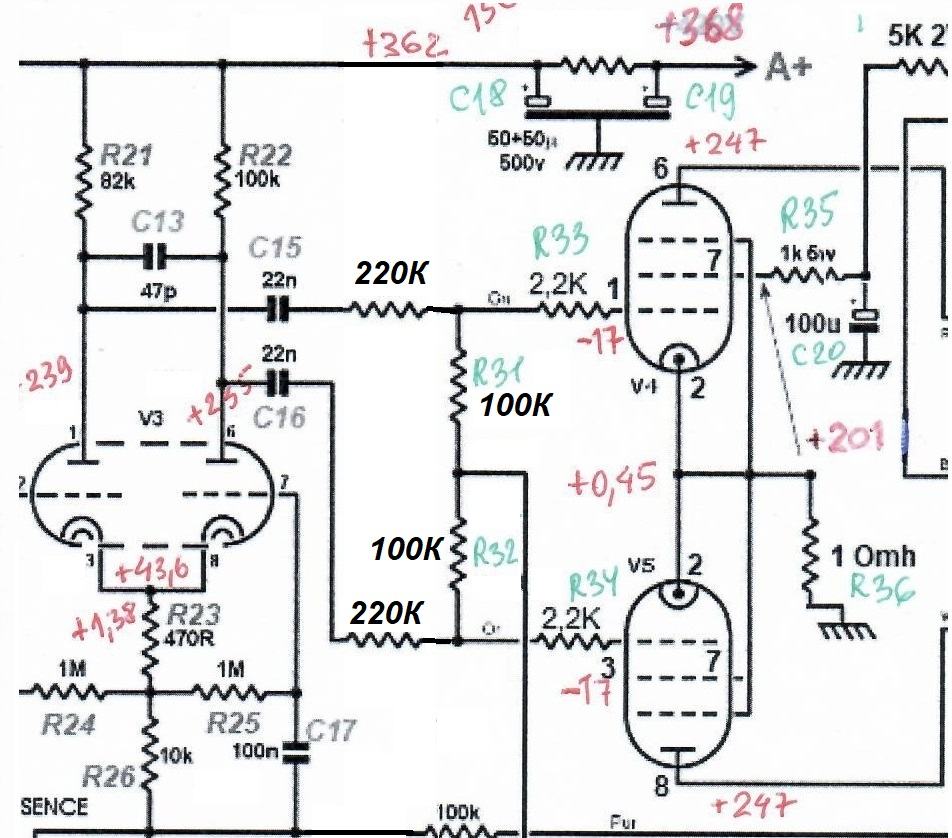 Далее на вторые сетки идёт резистор 470 Ом(R35).