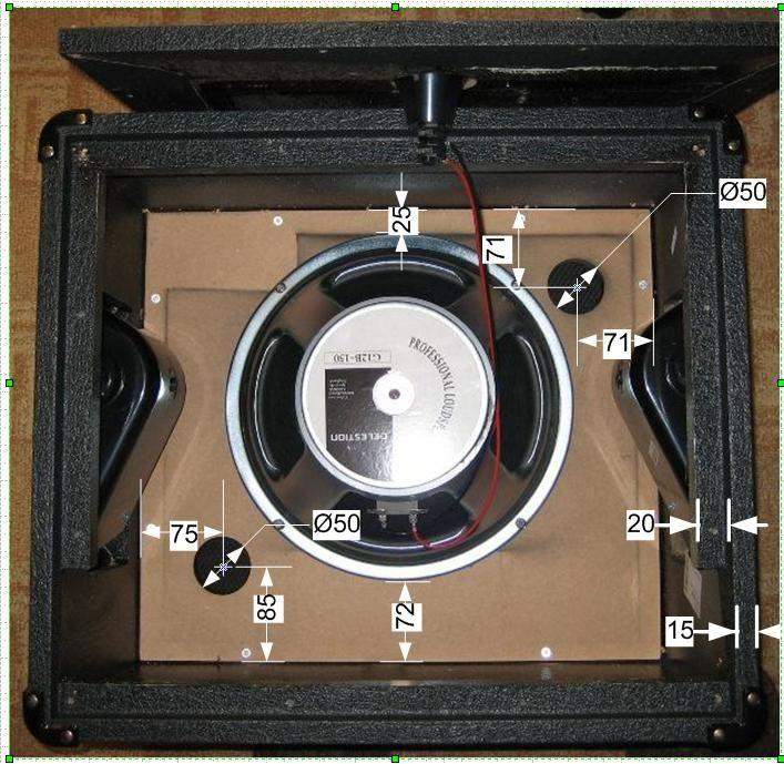 Задался целью сделать кабинет 1х12. Нашел замеры фирмового Маршала 1912 1х12. На них в лицевой стенке отверстия фазоинвертора, а длинна трубок не указана. На забугорном сайте наткнулся на фото с трубками, но описания нет. Фото не кликабельно, не копируется.