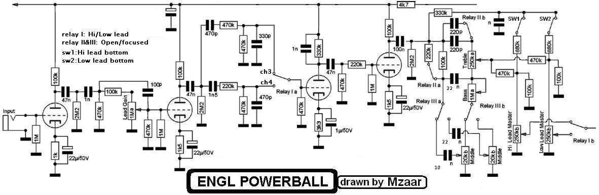 собственно, шёл по схеме сначала одного товарища по модденой схеме, но как оказалось там межкаскада была с пауэра и обвязка гейна была тоже, не лидовая как оказалось больше под ритм канал, только ритм соответсвенно был недостаток гейна, в итоге переделал по схеме что выше, где схема исправлена красным, если надо могу выделить что именно я себе паял. что бы не путаться, ну и тембр блок я изменил немного, номиналы теже, просто убрал лишнюю коммутацию для лид 1 и лид2, сделал просто волумы на каждый канал и мастер общий, и не заюзал режимы LLB и HLB я так понял оно немного миксует обход вч в выход тб, надо будет потом на трубе или в плагине в ревалвере заслушать что оно вообще даёт, ну и оставил режим фокуса, для соло хорошо собственно в демке выше соло писал в фокус режиме.