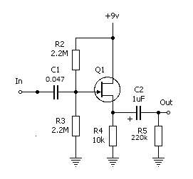 Потом всетаки решил обратить внимание на истоковый повторитель на ПТ. Сегодня собрал, схема заурядная 2 резюка по 2МОм входной делитель, 47 нан входной конденсатор, 2sk170, в истоке 10кОм, 1мкФ выходной конденсатор и 220кОм подпорка выходного кондера на землю. Питание включается через средний контакт заблаговременно приобретенного стереосвитчкрафта. Включил инструмент и офонарел, количество наводок резко уменьшилось и самое главное, исчезло радио из сигнала на хайгейне. Ток потребления порядка 0.6 мА, коэффициент гармоник не более 0.2%. Все собрано на плате 43х25мм. При желании при наличии отвертки сигнал легко пускается в обход повторителя перекоммутацией 2 разъемов. Инструмент зазвучал ярче и серьезней. Желания выколупывать макет из леспола таперича нет совсем.