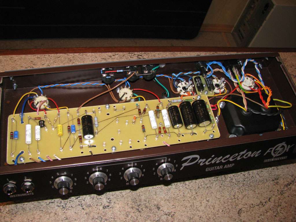 Закончил на днях проект комбо примерно по схеме Fender Princeton AA964, но с изменениями.