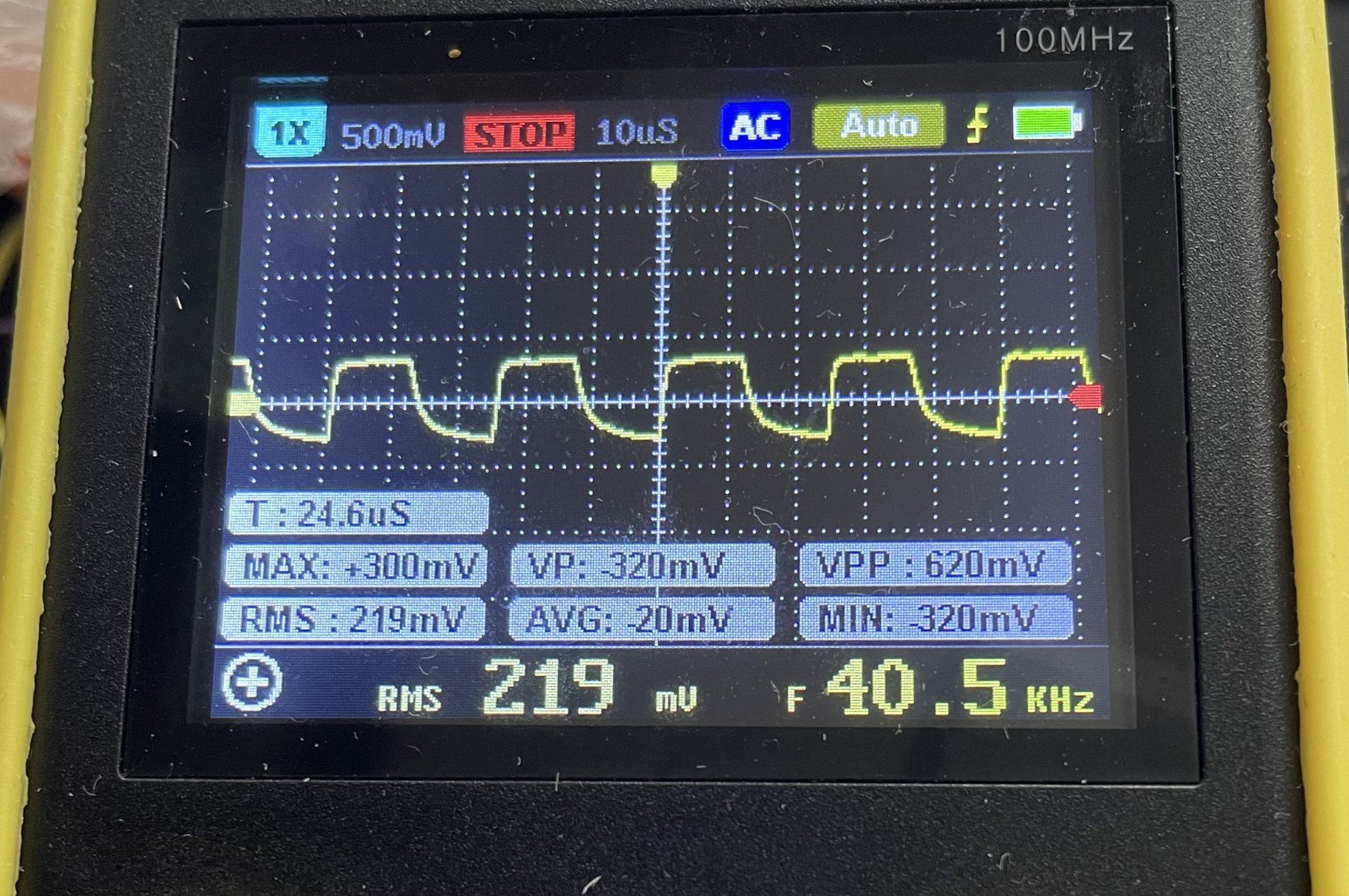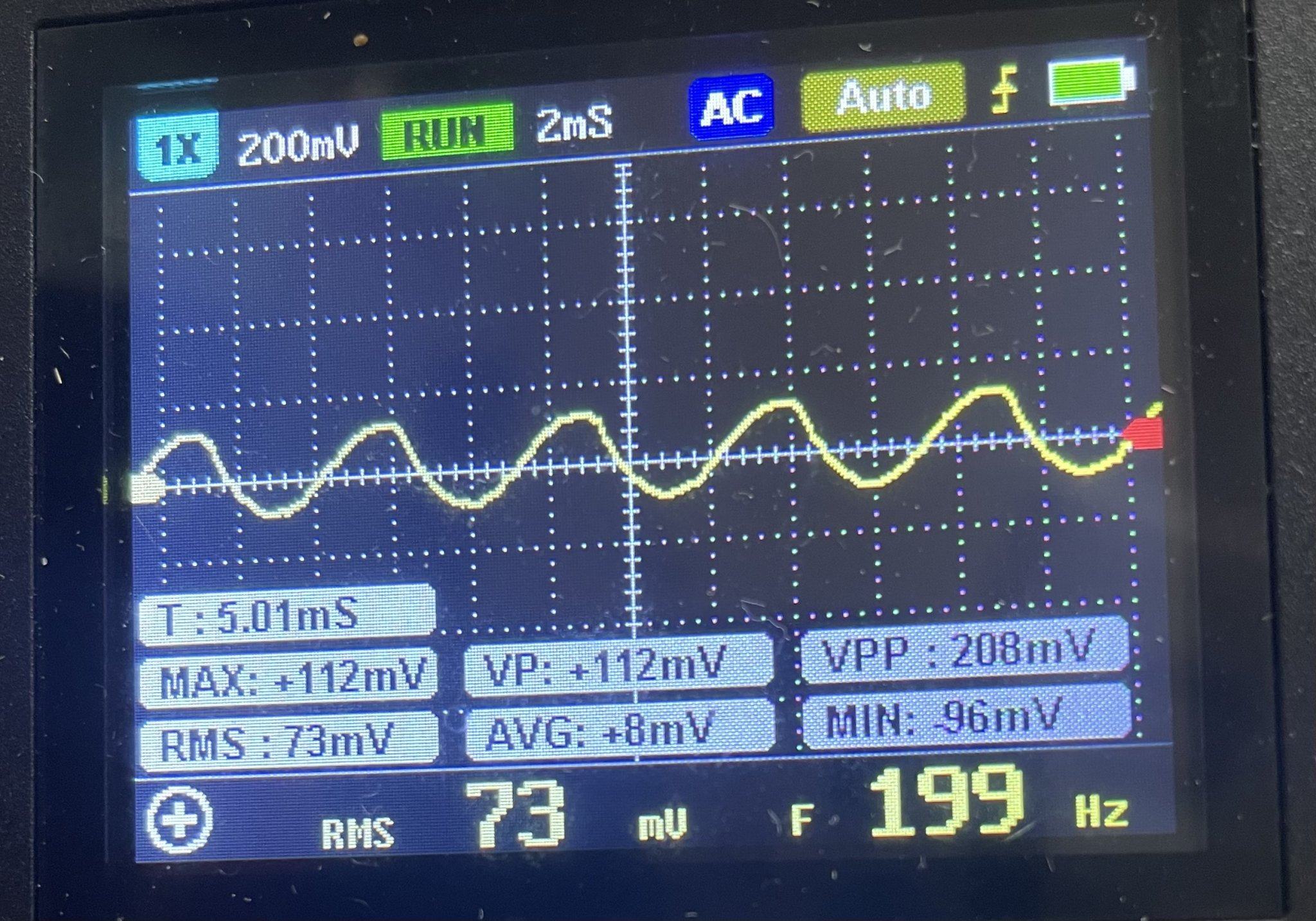 ... и добавил:Да, и чувствительность выбирайте чтобы сигнал занимал не менее 50% высоты экрана, а не вот эта жалкая полоска посередине. Плевать, что снизу он будет прикрыт показометром.