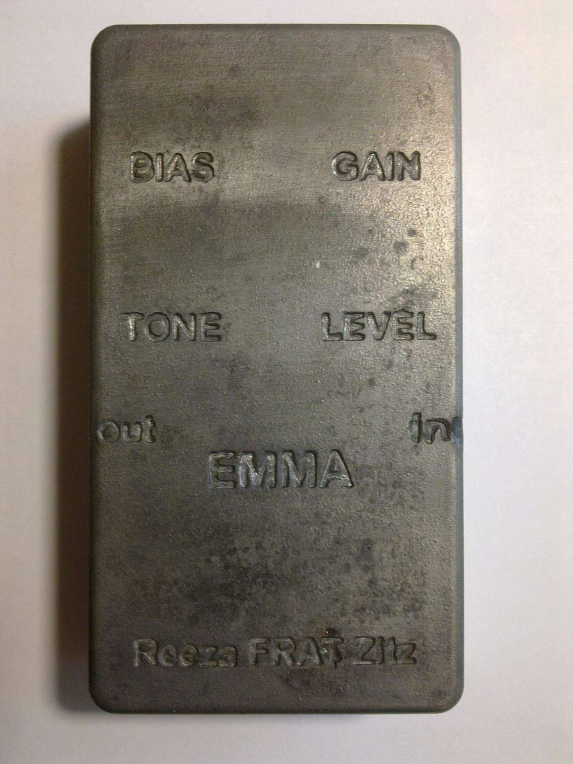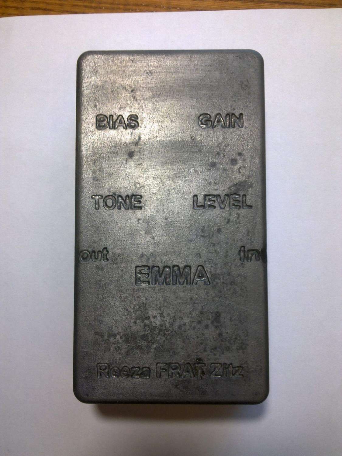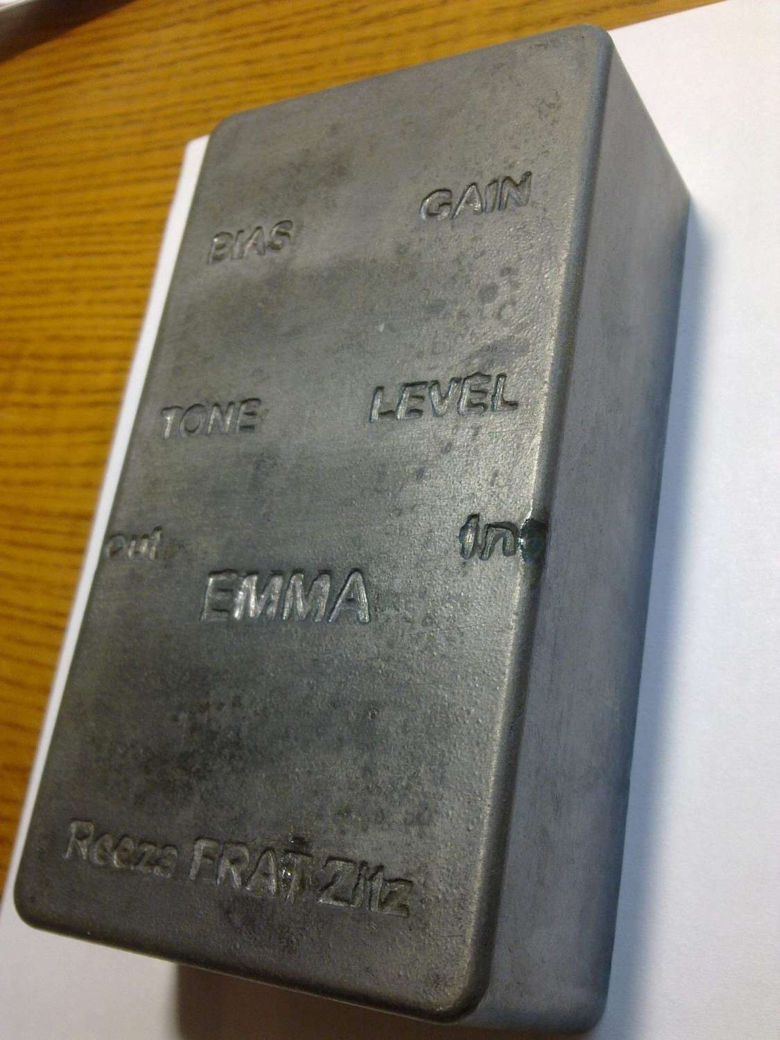 Вот наконец-то я тоже попробовал оформить корпус методом ЛУТа . Корпус сделал под примочку EMMA ReezaFratzitz ( тоже сам паял) . Размер корпуса- Hammond 1590N1 ( чуть больше стандартного MXR) . Сначала нарисовал в Кореле макет с надписями, и отзеркалил его. Напечатал на глянцевой обложке от журнала "Отдохни" )). Обезжирил корпус спиртом 96 %. Отверстия в корпусе не сверлил. Потом нагрел корпус в духовке около 5 мин. при Т 180 град. Сразу же приложил рисунок сверху, отцентровав его. Прогладил утюгом около 5 мин. Дал остыть около 10 мин, приложив сверху под пресс. Под водой смыл бумагу с куском ваты ( аккуратно, чтобы не повредить тонер) . Рисунок перевёлся идеально, не считая нескольких мелких точечек, которые я зарисовал маркером. Травил в р-ре Хлорного железа около 2-х часов. ( сделал раствор сильным) . По задумке я делал чтобы вытравливались только буквы внутрь . Корпус потом покрашу в красный, а буквы закрашу в чёрный. Так вот, травил я его часа 2, периодически вынимая, чтобы посмотреть, и заодно охладить в воде. Надо отметить, что площадь вытравливания была маленькая( только буквы), поэтому корпус почти не нагревался. А дальше самое интересное. При осмотре буквы почти не вытравливались, только изменили цвет на чёрный. И тут я случайно провёл пальцем по корпусу, и заметил, что кусочек буквы отлетел. Я понял, что буквы уже давно протравились, попробовал аккуратно прорезать внутри надписей тоненьким острым скальпелем, и увидел что протравленные части легко отходят при лёгком вырезании. Почему-то надписи сами не вытравились на нужную глубину, а только стали размягчёнными . Вот так я по вырезал все надписи. Наверное можно было бы это сделать жёсткой зубной щёткой, чтобы меньше возиться с гравировкой. В след.раз пропробую. В целом результатом доволен, метод себя оправдывает 100% .