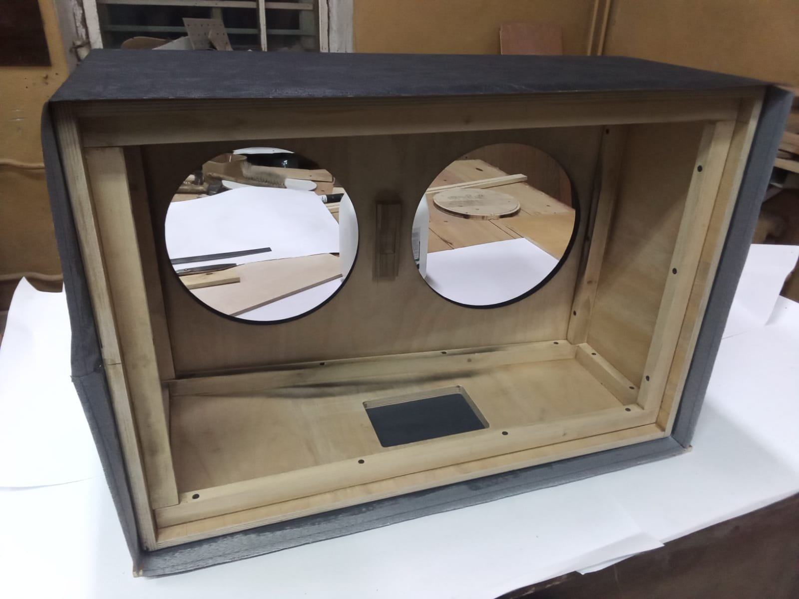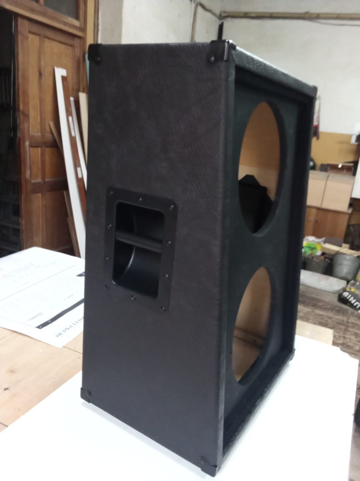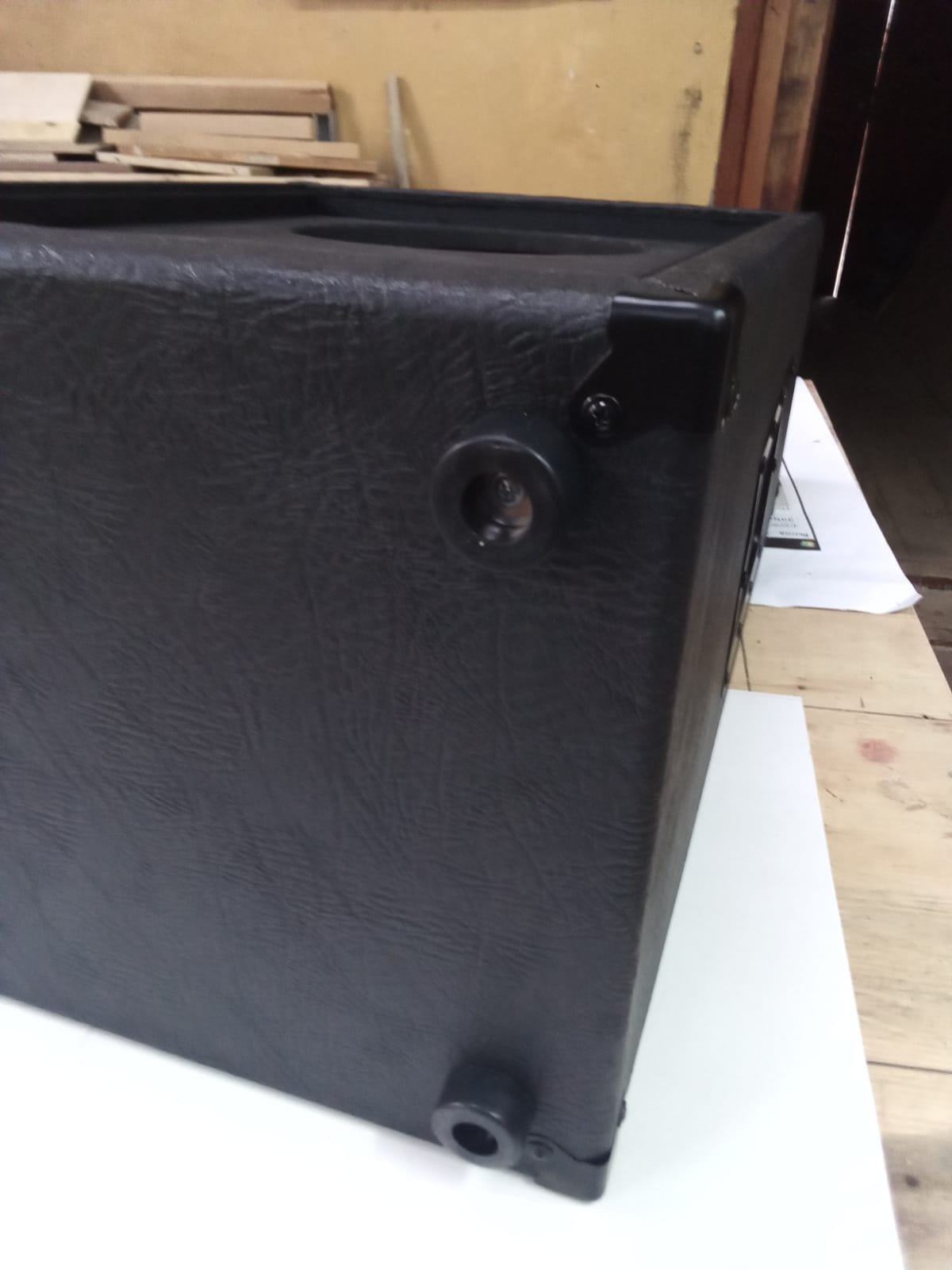 Обтянул корпус и заднюю стенку винилискожей. Получилось честно сказать хреново,глаз не радует,много складок и просчитался когда обрезал, на загибах маловато получилось. Одно утешает-для себя.