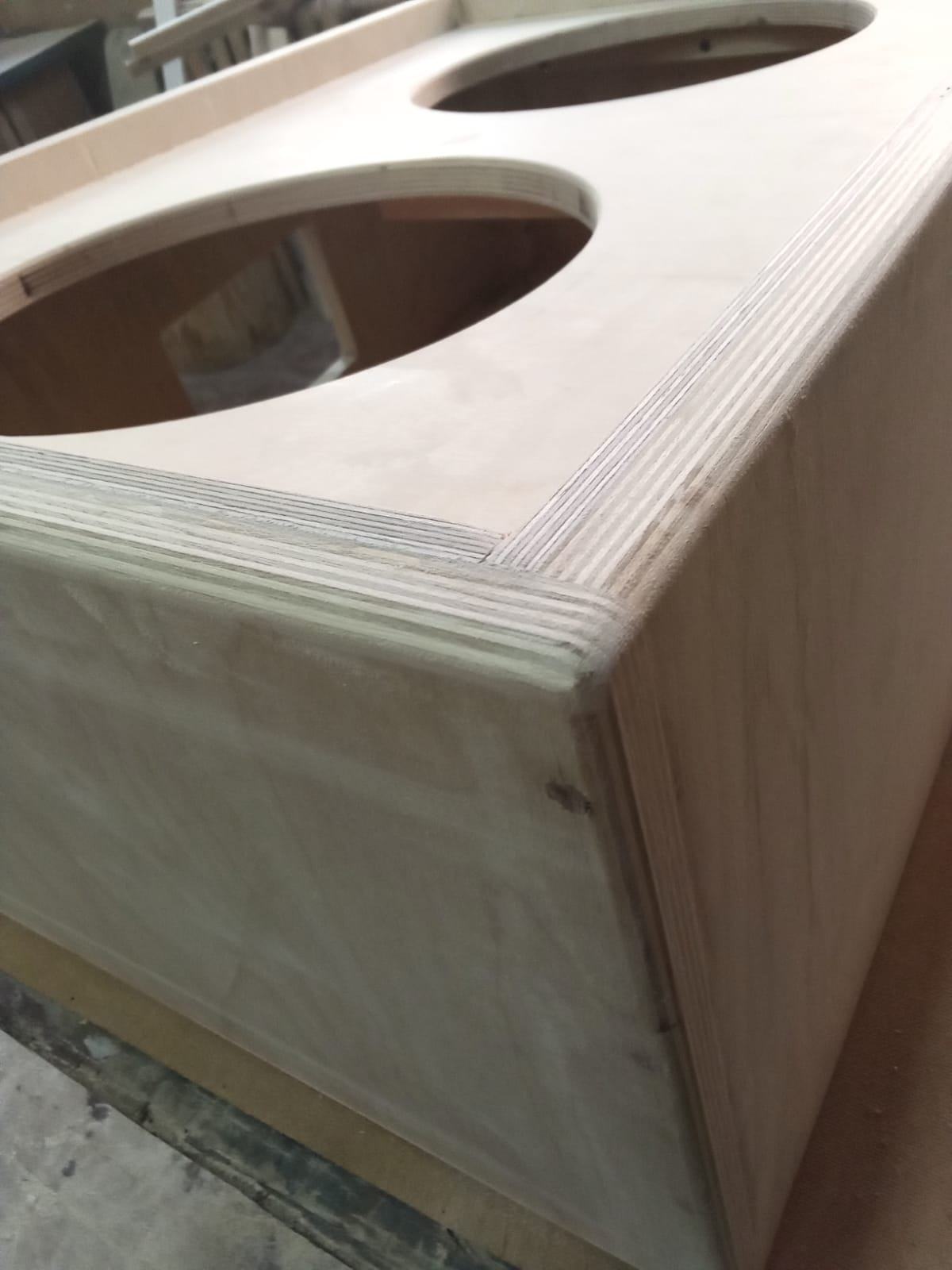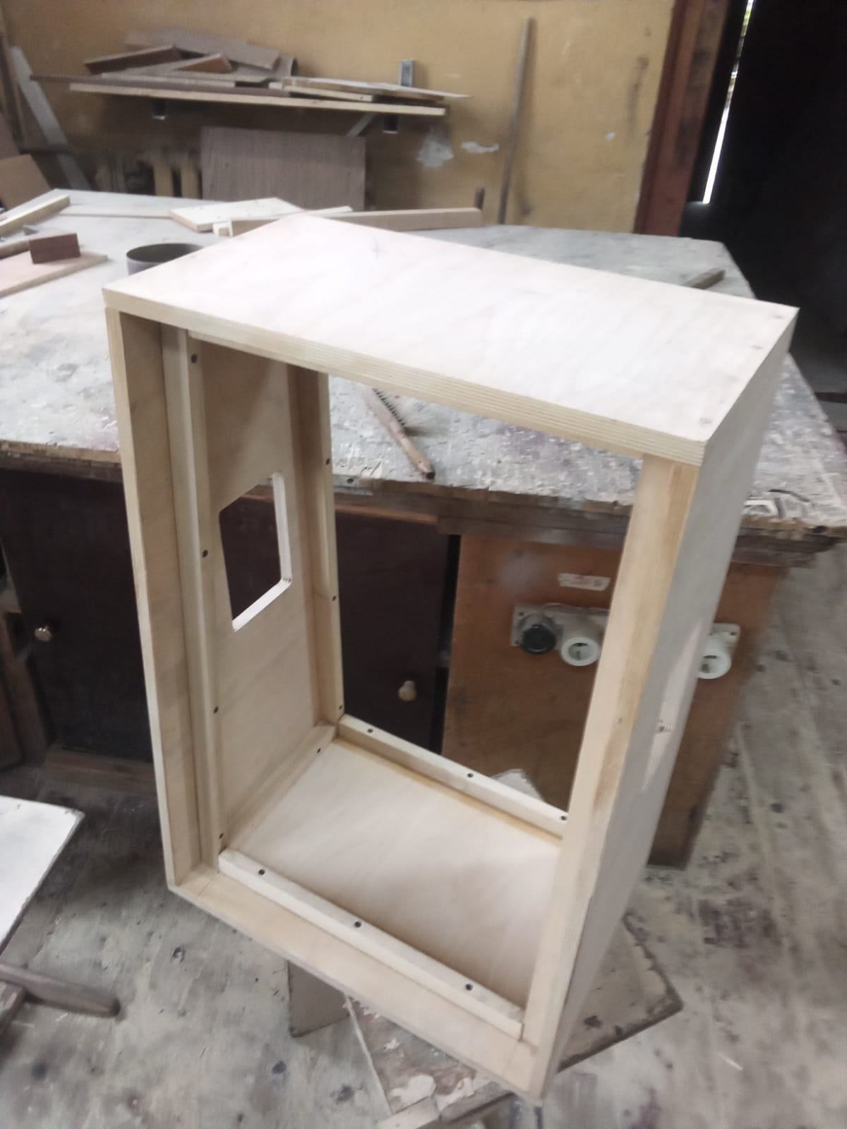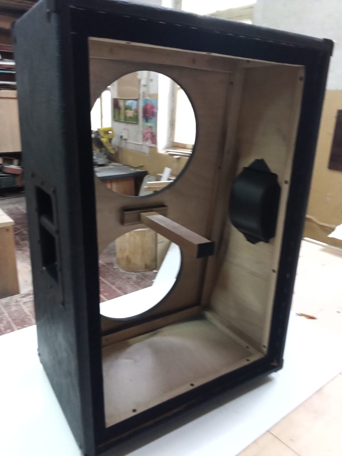 Обтянул корпус и заднюю стенку винилискожей. Получилось честно сказать хреново,глаз не радует,много складок и просчитался когда обрезал, на загибах маловато получилось. Одно утешает-для себя.