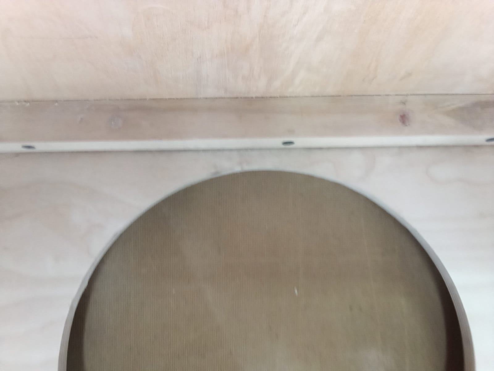Вырезал решетку.Решетка пластиковая,куплены была еще тогда много лет назад у Ерасова.Все это время лежала свернутая в трубу ,как и пришла. Месяц лежала под грузом на столе,но так и не расправилась окончательно.Видно что волна осталась. Что можно сделать? Не хотелось бы делать по середине между динамиками брусок для крепления дополнительного. Если прогреть немного феном и снова под груз,поможет?