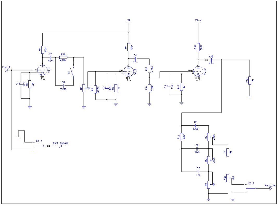 - хочу попробовать вкорячить фильтр, поднимающей середину, как у тюбскримера. Люблю такой звук. Схемку мне тут недавно подкинули.
