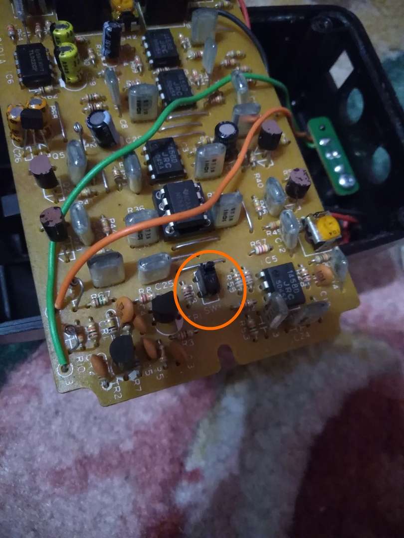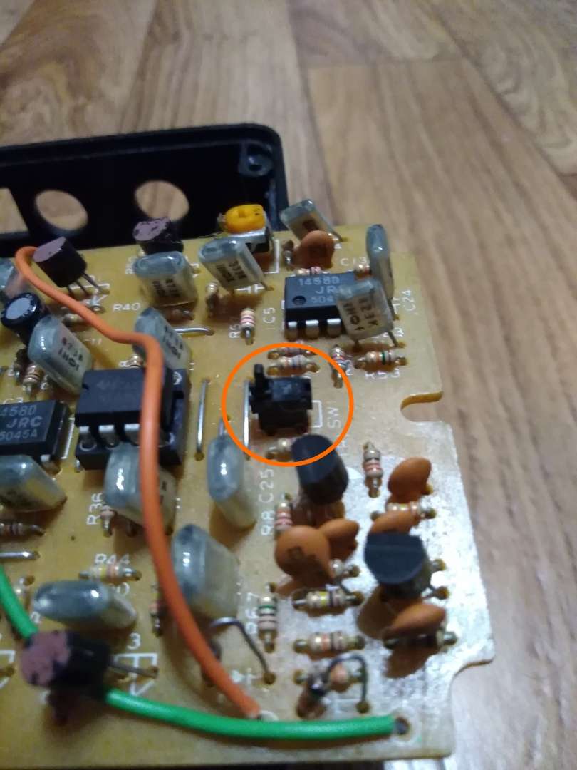 В общем, имеется педаль фейзера Ibanez PH-5, недавно стал замечать, что не всегда срабатывает включение и отключение эффекта. Разобрал и увидел вот эту махонькую чёрную кнопку. Понажимал на нёё пальцем (мало ли, может верхняя пластиковая часть со временем стала люфтить) - срабатывает не всегда. Всё, кнопочке потихоньку приходят кранты?
