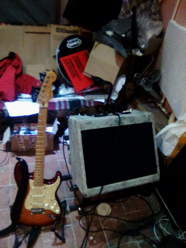 В связи со временной потерей постоянной работы, я долго думал, чем обклеить сие изделие, и в гараже нашел старую куртку, в которой Дед стоял у горна (Липецк как известно город металлургов), которая имела крайне винтажный вид, и из далека напоминала поношенный твиид, ну и решил попробовать использовать этот материал, так как уже понимал, что не хочу клон Фендера, а хочу комб по его мотивам...