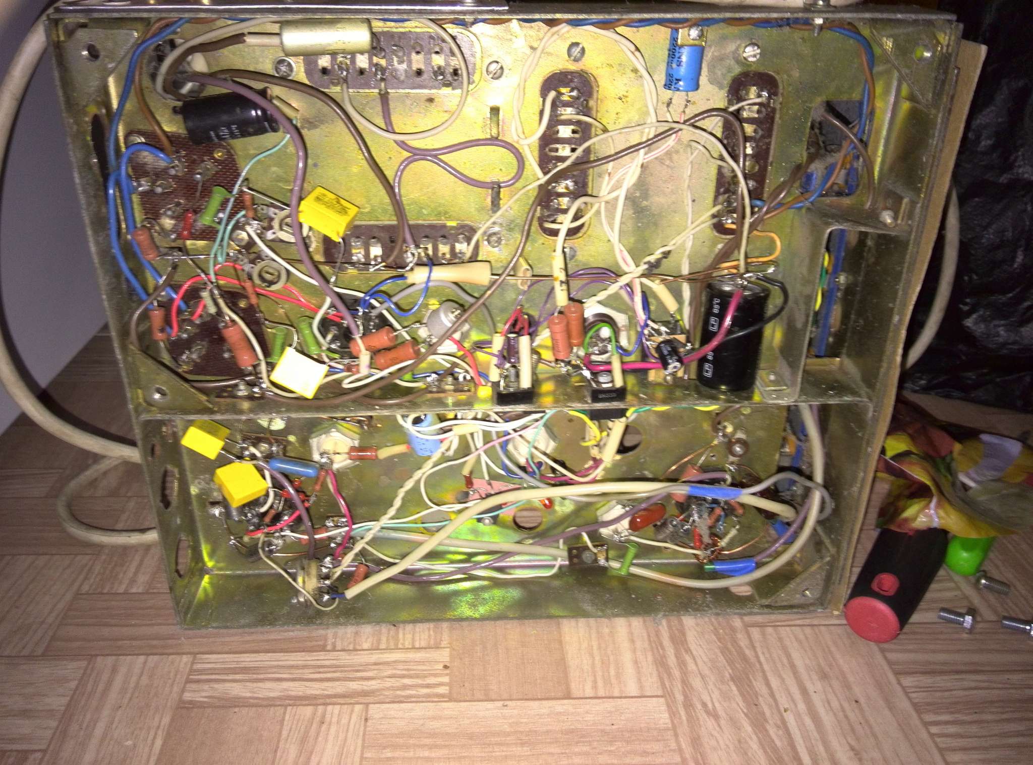 3. На плате с лампой у Ультрагея стоит кучка деталек. Напряжение на одном триоде 24 Вольта, на втором 42. Уже интереснее