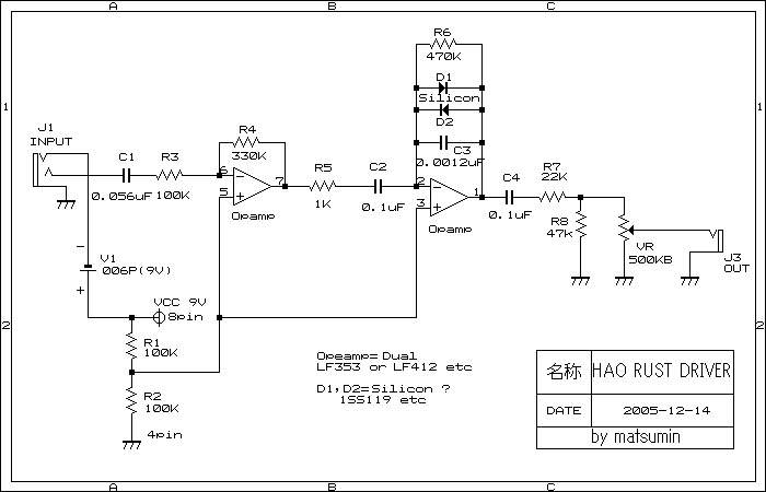 Размеры платы примерно 40*25mm (по факту - чуть меньше). Диоды - красные 5мм, резисторы 1% металопленка, конденсаторы - пленка и электролиты. Есть пару танталов (в оригинале танталы тож стоят). Все детали подписаны, наведите мышкой и увидите номинал. ) Операционник - LM833n (как в оригинале, найти - не проблема как оказалось). Но подойдет практически любой другой - TL072, JRC4558, NE5532 и тп.