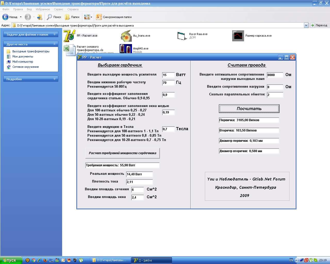 Но это всё после того, как пару раз посчитает программа,и пару раз вручную прикинете, лезет или нет с учётом диаметров реальных проводов и толщины межслойной и межобмоточной изоляции.