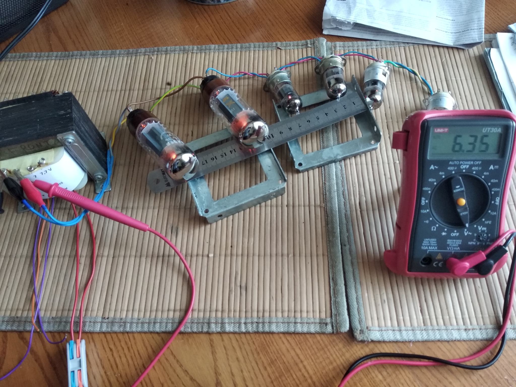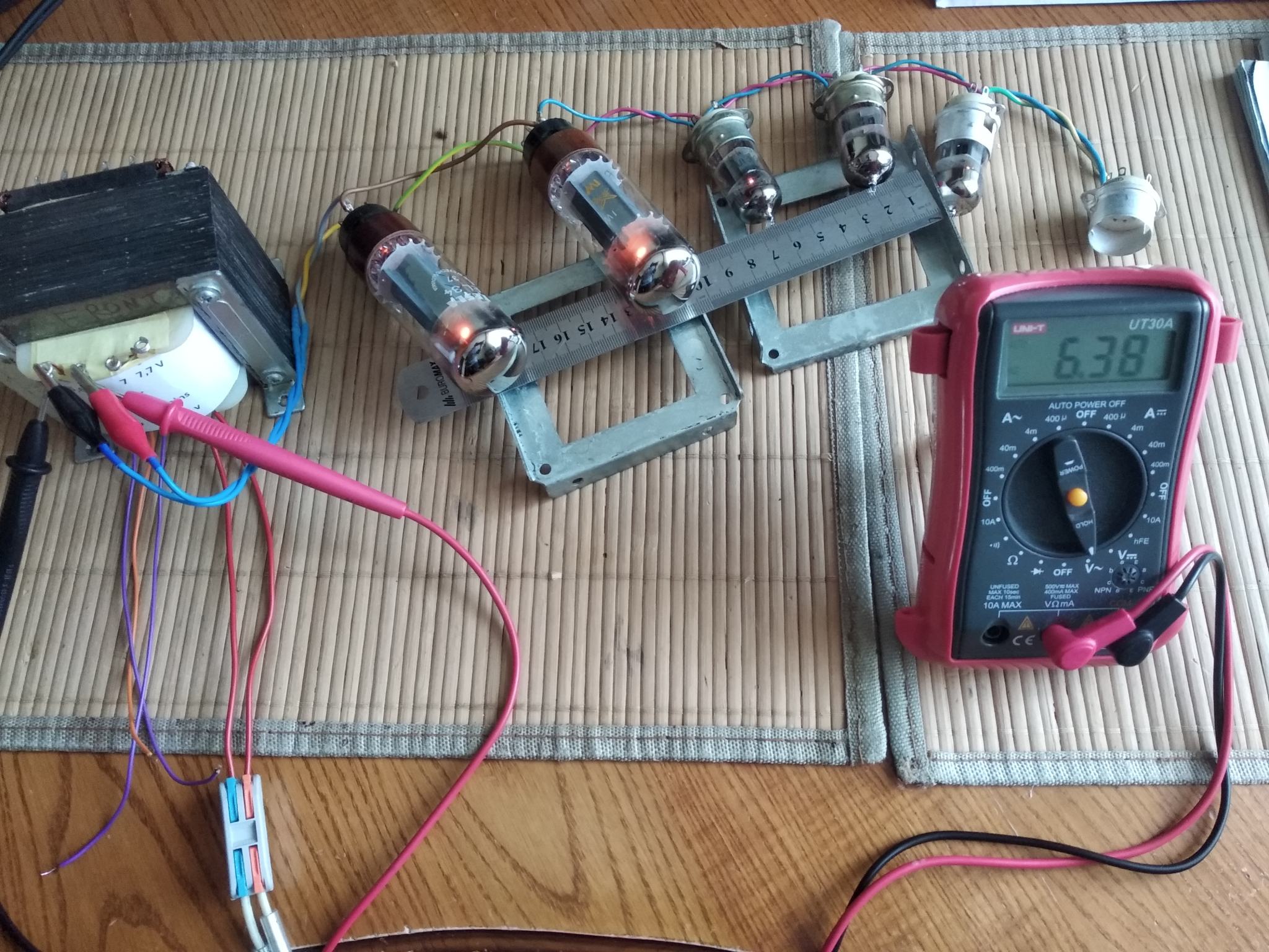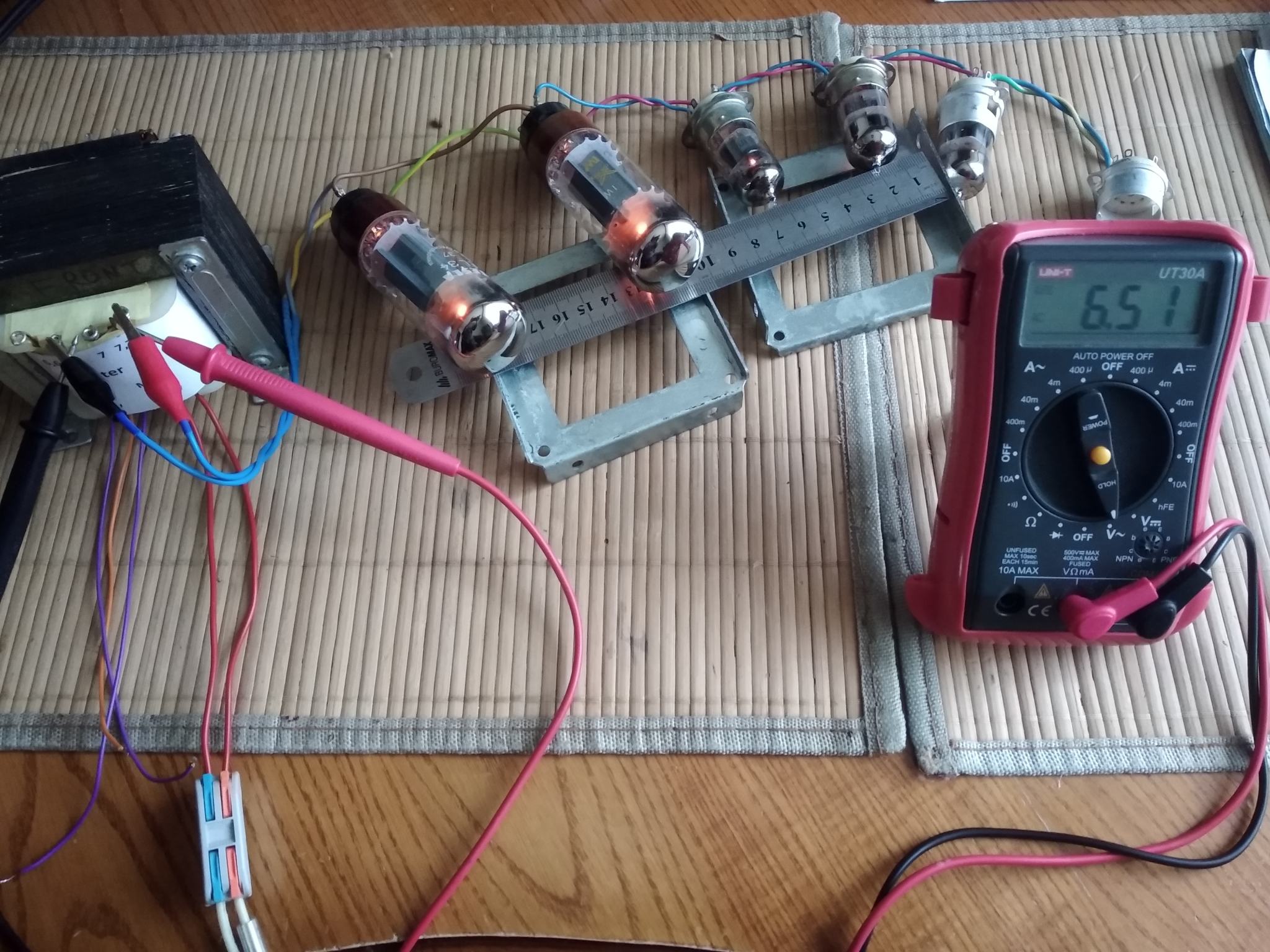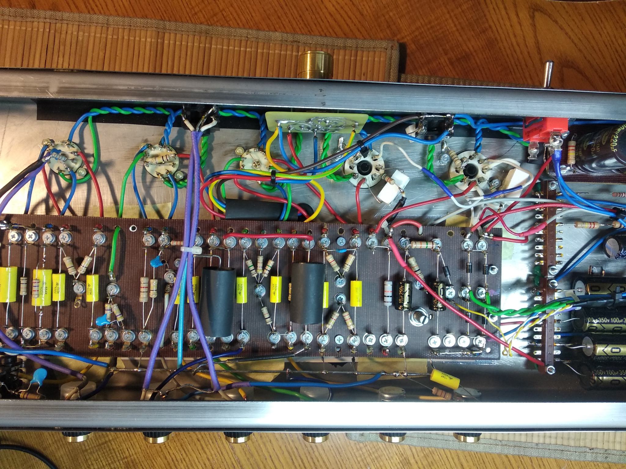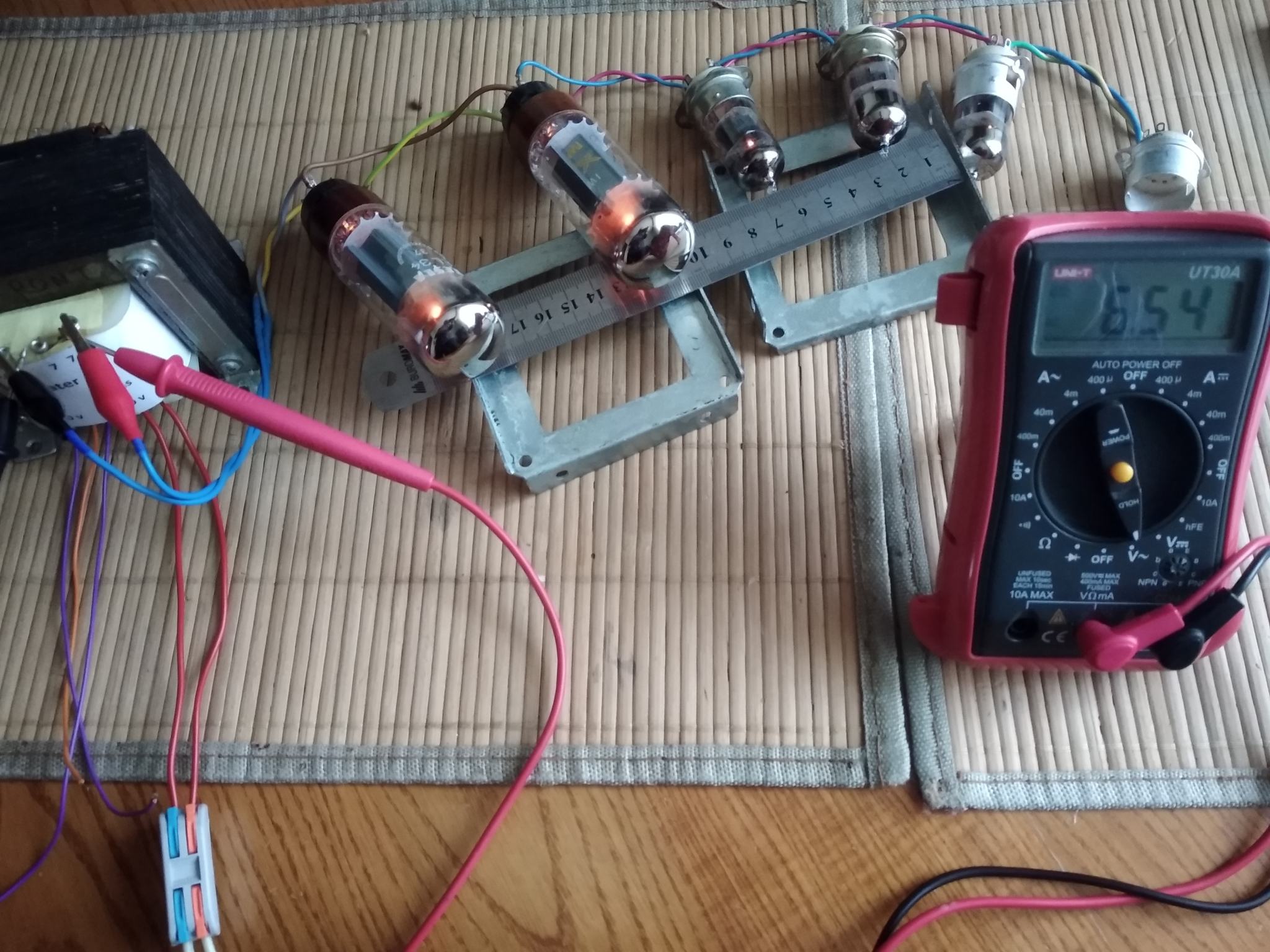 Пока нет возможно купить новые EL34, а старые умерли полностью. Для тестов звука поставил пару 6П3С в оконечник. Режимы соблюдены , анодку сделал переключаемой ( 380/420 В). Выходник с выходами на 4, 8, 16 ом , под приведенку 3,2 кОм.