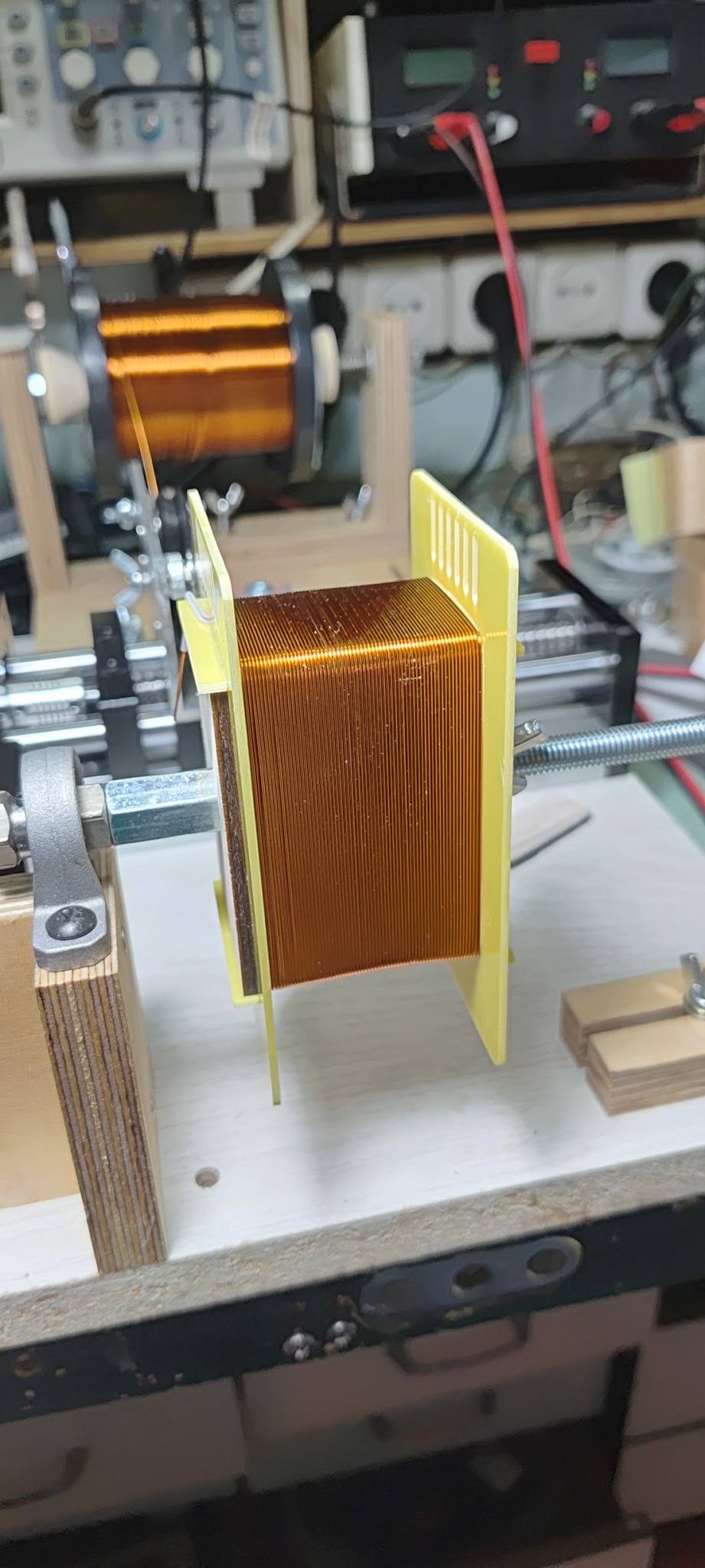 а из длины катушки вычесть 0,5. А то пластины будет проблематично вставлять, особенно, если каркас из жесткого материала.