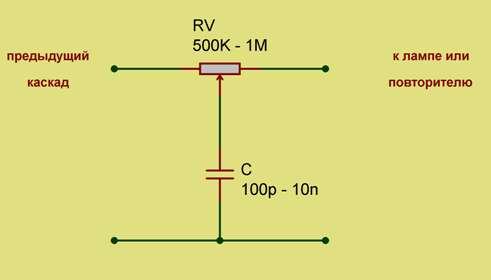 Обыкновенный RC-фильтр из емкости(С) и левой половины потенциометра(R)