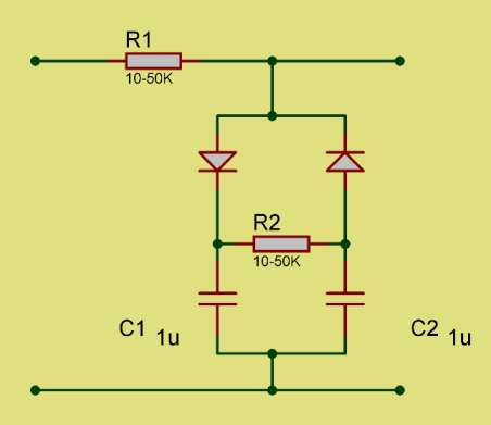 Всем знакомый ограничитель на встречно-параллельных диодах.