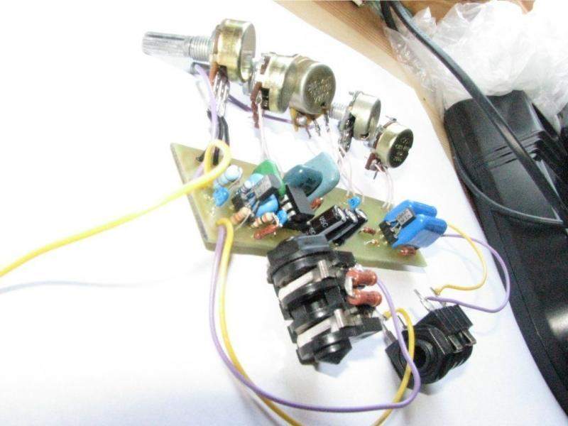 Собирал 2 раза.1й раз рисовал плату маркером-не заработала:звук гитары на полной громкости слышен где-то в далеке