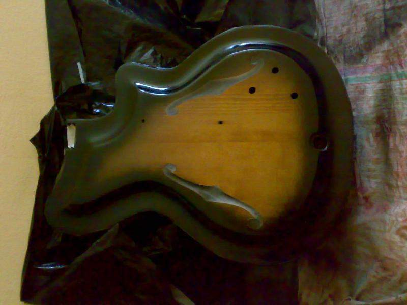 на выходные красил гриф и нижнюю деку..( краска сохнет часов 5 до полного высыхания еще больше-около суток, но для следущего слоя достаточно часа )