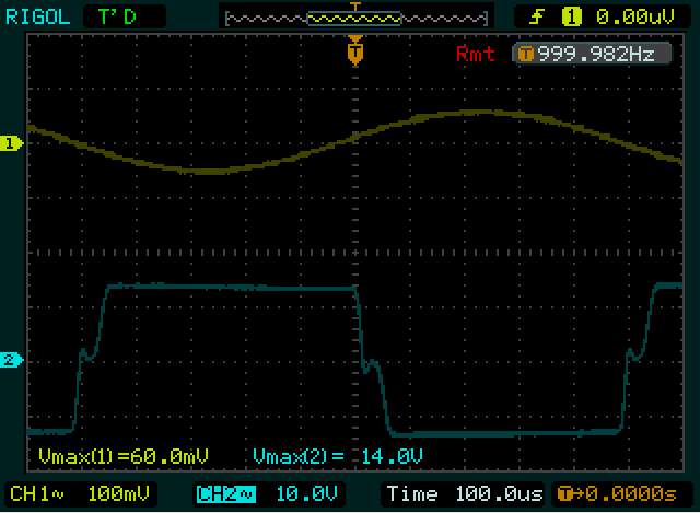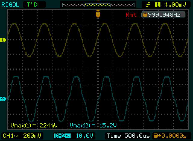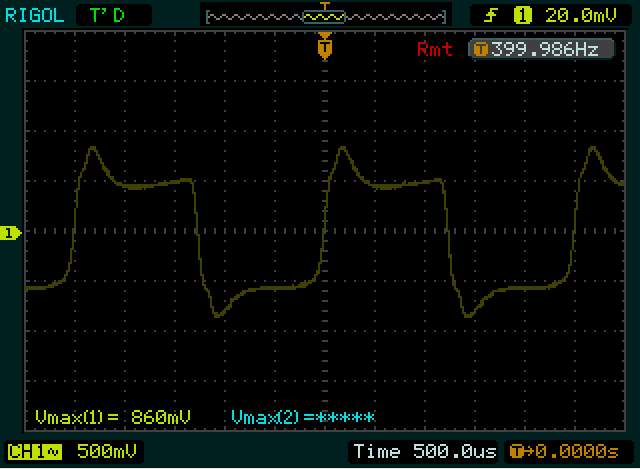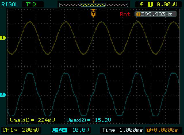 Синус выправился, ушла вторая (непонятно откуда) ступенька. Пропали безобразия на синусе при перегрузе.