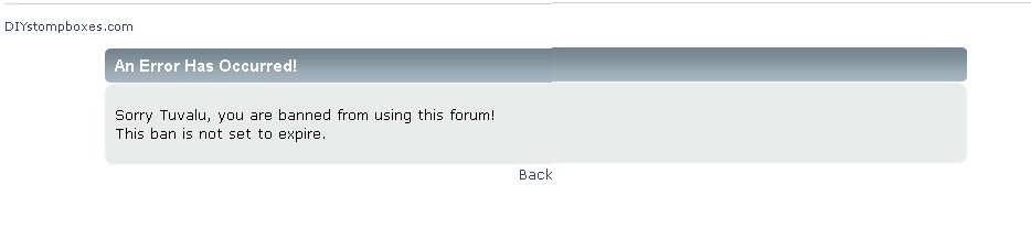 У меня с diystompboxes немножко другая история, года два писали, что, мол, ваша страна забанена. Только вот сейчас зашёл - пишут уже про персональный бан. Самое смешное, что я без проблем захожу туда либо через UltraSurf (браузер K-Meleon), либо через тор-браузер.