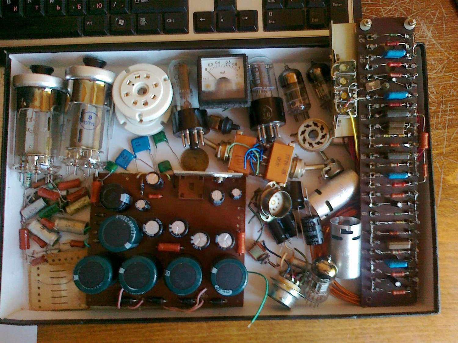 Дмитрий Владимиров Рас откопал у себя, значит какое то отношение к электронике имееш, начинать с ГУ-50 не просто, но реально, панельки для неё примерно столько же стоят сколько и лампы, это минус, но лампа, хотя и генераторная, в гитарных усилителях звучит нормально. Собирал на них нечто по мотивам энгла, при напряжении питания +750 В и С2 +260 В получилось 80 Ват хорошего звука))))