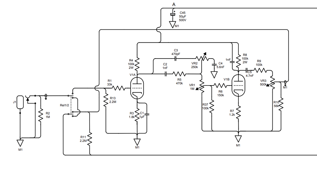 Если рабочая точка анода будет ниже - скажем, 1/2 питания, то нижняя синусообразная половинка начнёт подсекаться раньше и появится нежелательный фуззовый призвук.