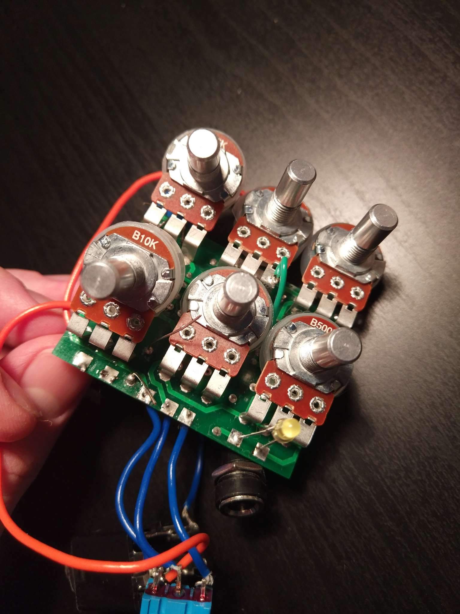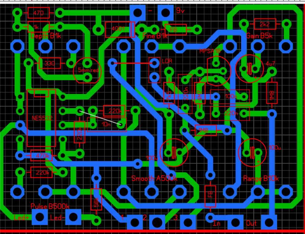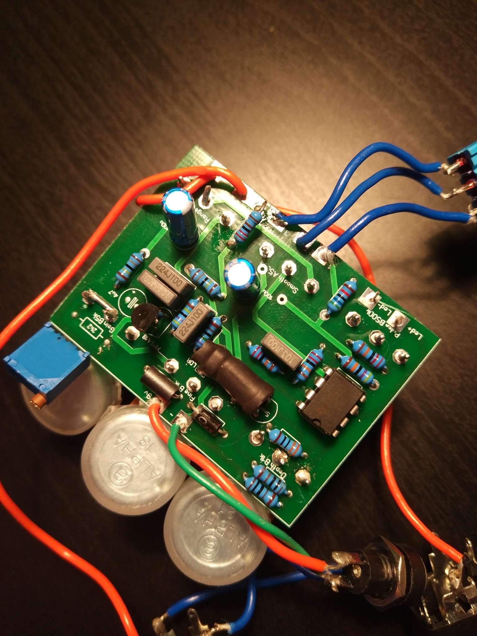 Всем привет! Решил собрать вот такое тремоло. Оно состоит из LFO от tremulus lune и звуковой части magnavibe. Собрал значит, но звук очень громкий и эффекта почти нет. Тумблер трем/вайб ничего не меняет. Делал на светодиоде и LDR в термоусадке. Светодиод мигает, регулируется, значит проблема в magnavibe. Сделал на плате с завода, так что кривой монтаж отпадает сразу.