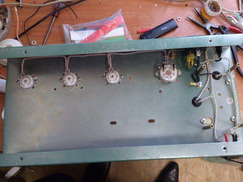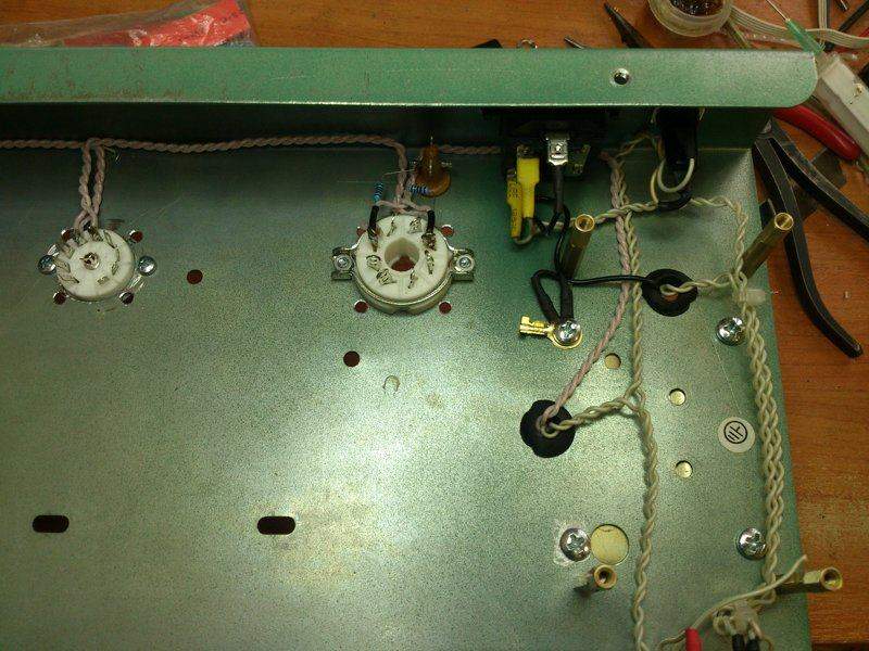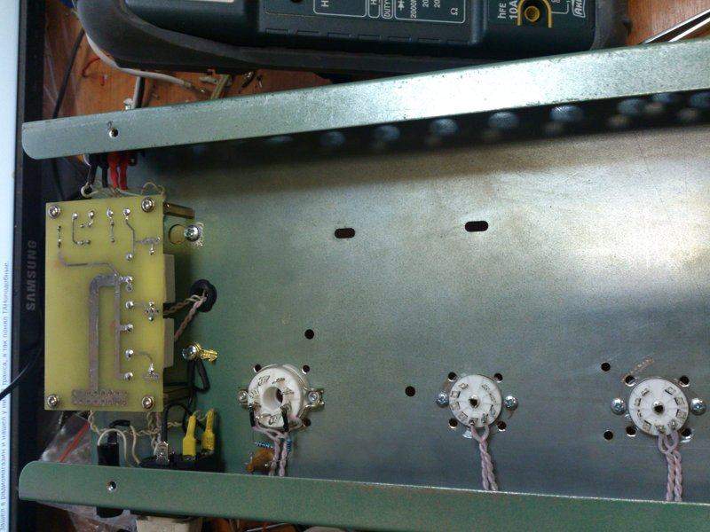 На накалах 6,25 В, 370 В анодки без нагрузки (емкости 100+100+47), при том что первичка транса распаяна на 230в при напряжении в сети 208-215. Разводка накала проводом МГТФ-0,6, высоковольтной части - адовым серебрёным ракетным проводом от 75-го ЗРК (хз, или он от U2, тырил-то в темноте