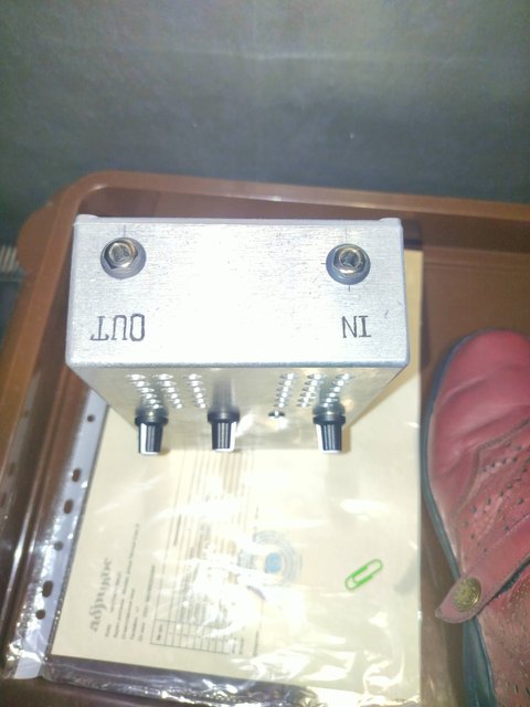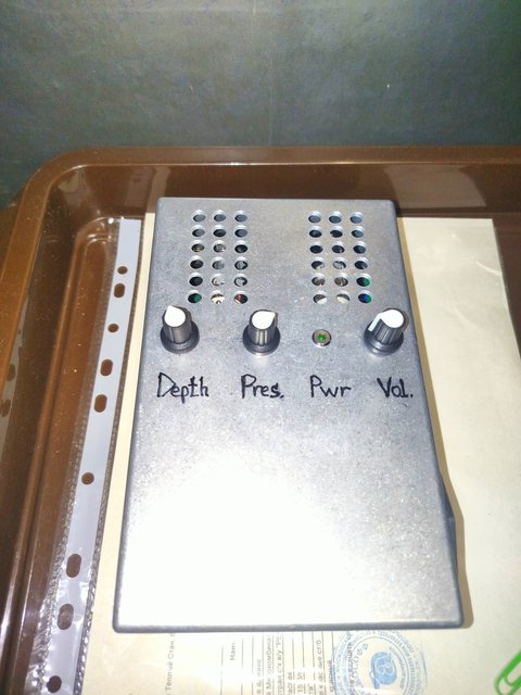 По прошествии, как положено, девяти месяцев от зарождения хотелки, родился в муках мелкий оконечник типа для педалборда, в корпусе G0247 .